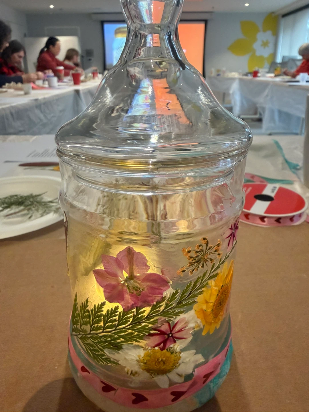 Selling a decorative floral display jar. It's filled with preserved flowers and foliage, creating a beautiful and unique piece for any room. Perfect for adding a touch of nature to your home decor!