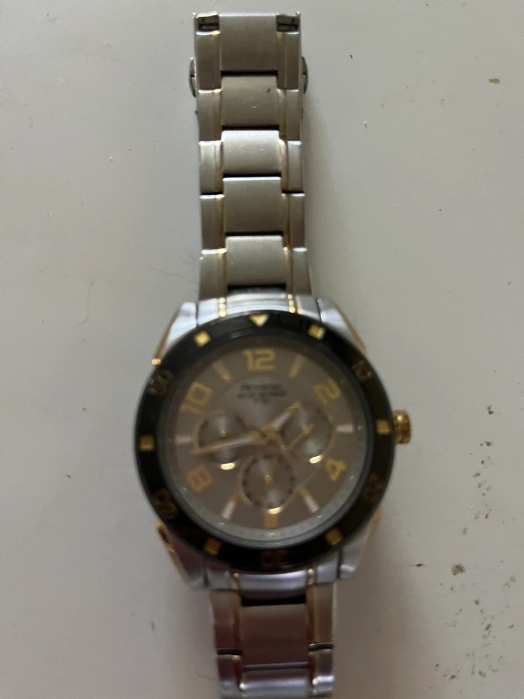 Relic by Fossil watch in a two-tone silver and gold finish. It has a chronograph dial and a stainless steel band. A stylish timepiece for everyday wear
