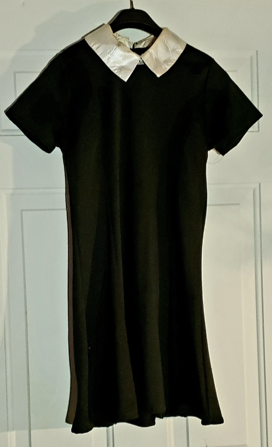 Black dress featuring a white pentagram graphic on the front. It has thin spaghetti straps. This dress is a size medium and fits like a glove. Super comfy
