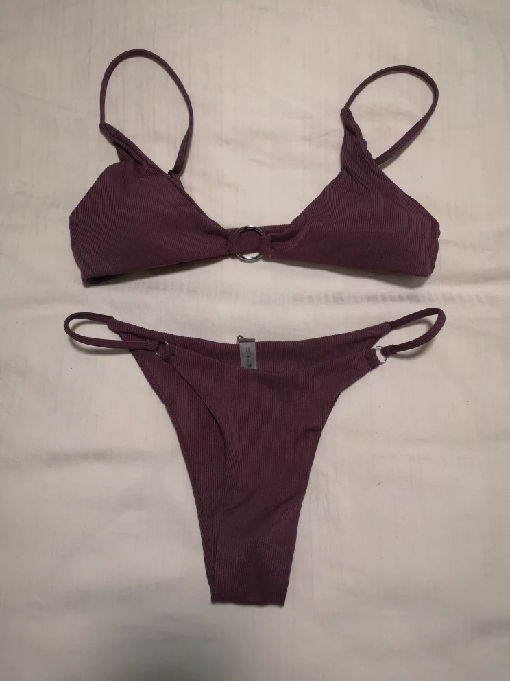 378Size 8 brand new mauve bikini. Hygiene sticker. Adjustable shoulder straps. Cheeky bottoms. Did not fit me and can't return.