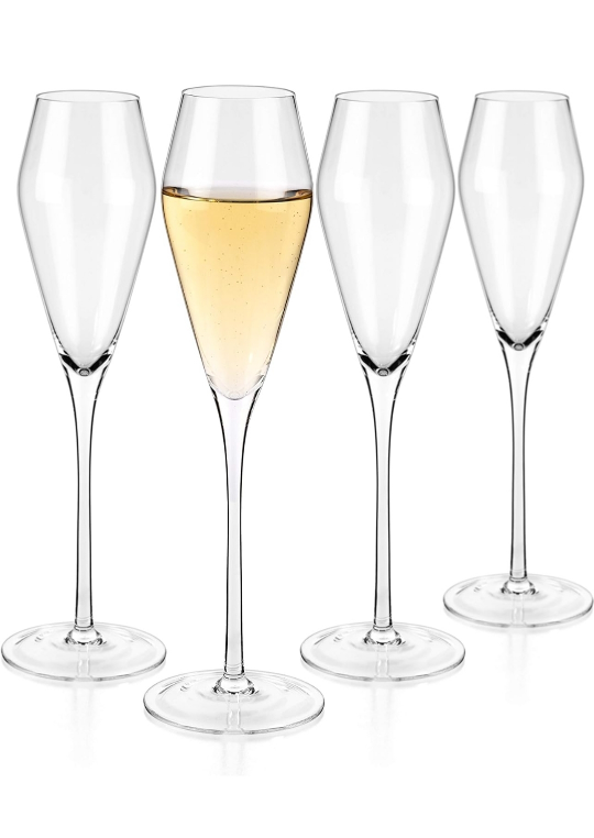 PERFECT FOR SPARKLING WINE - The glasses exhibit the delicate bubbles of Prosecco, Cava, Crémant, Sekt or champagne cocktails. This elegant glass will turn champagne into a sparkling experience. Treat yourself to an exclusive moment with the right glasses;