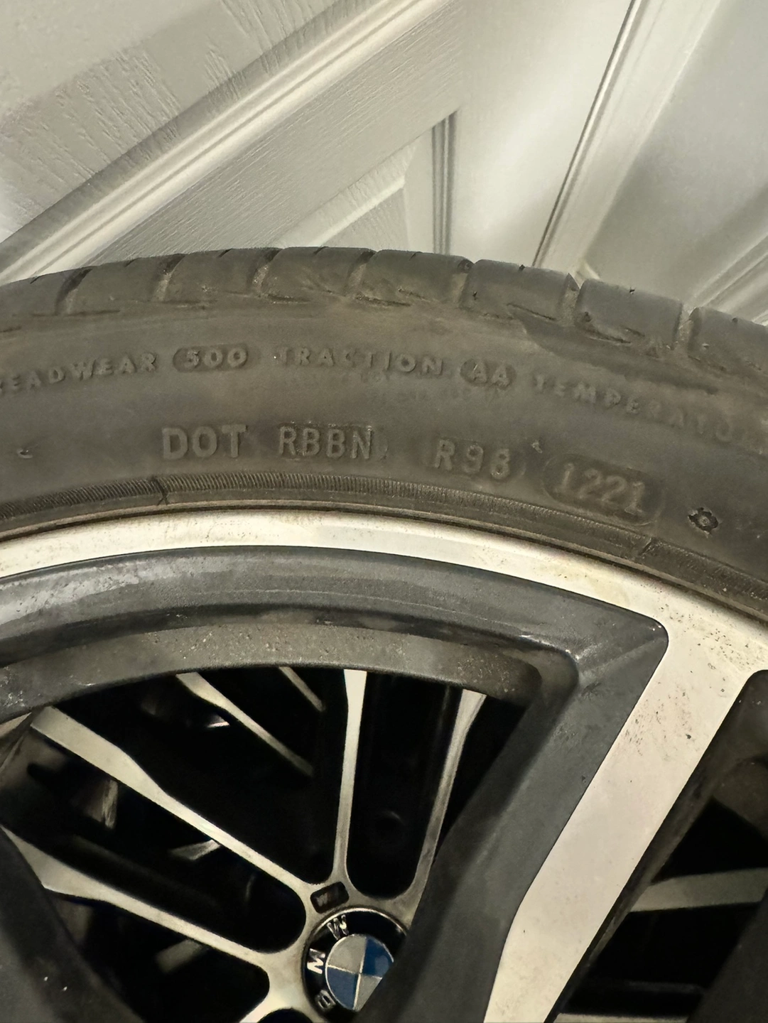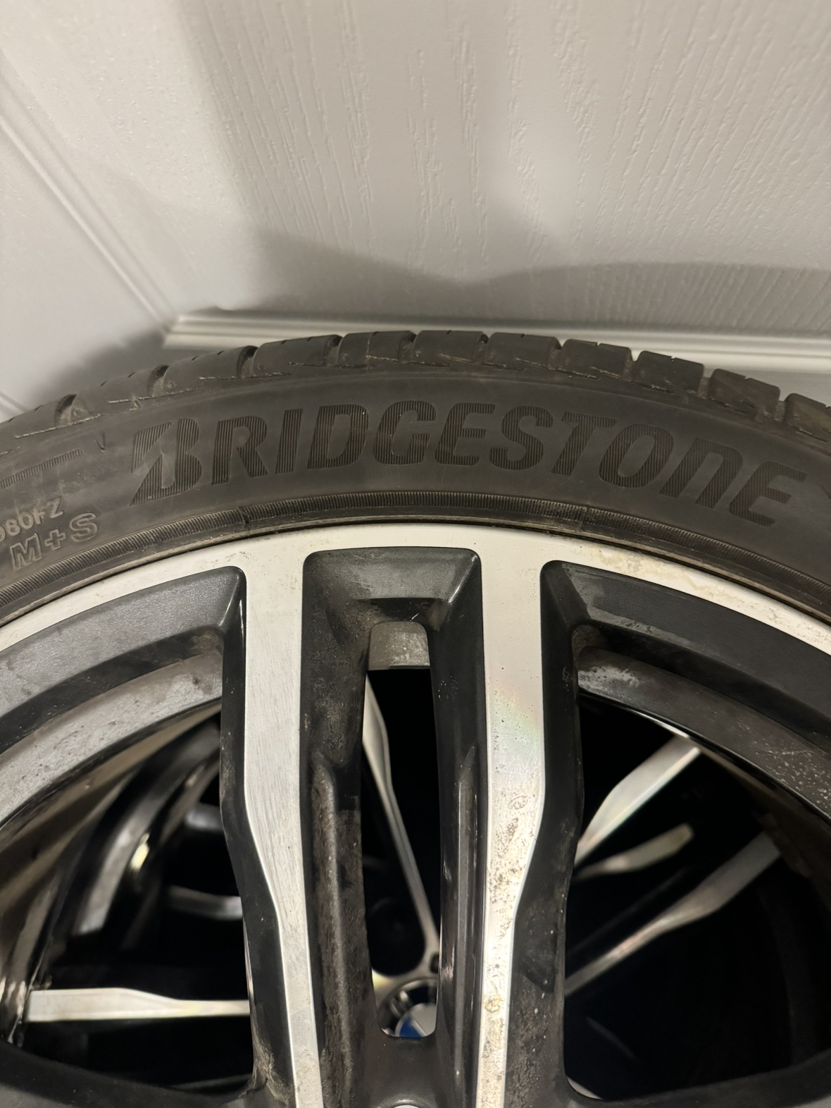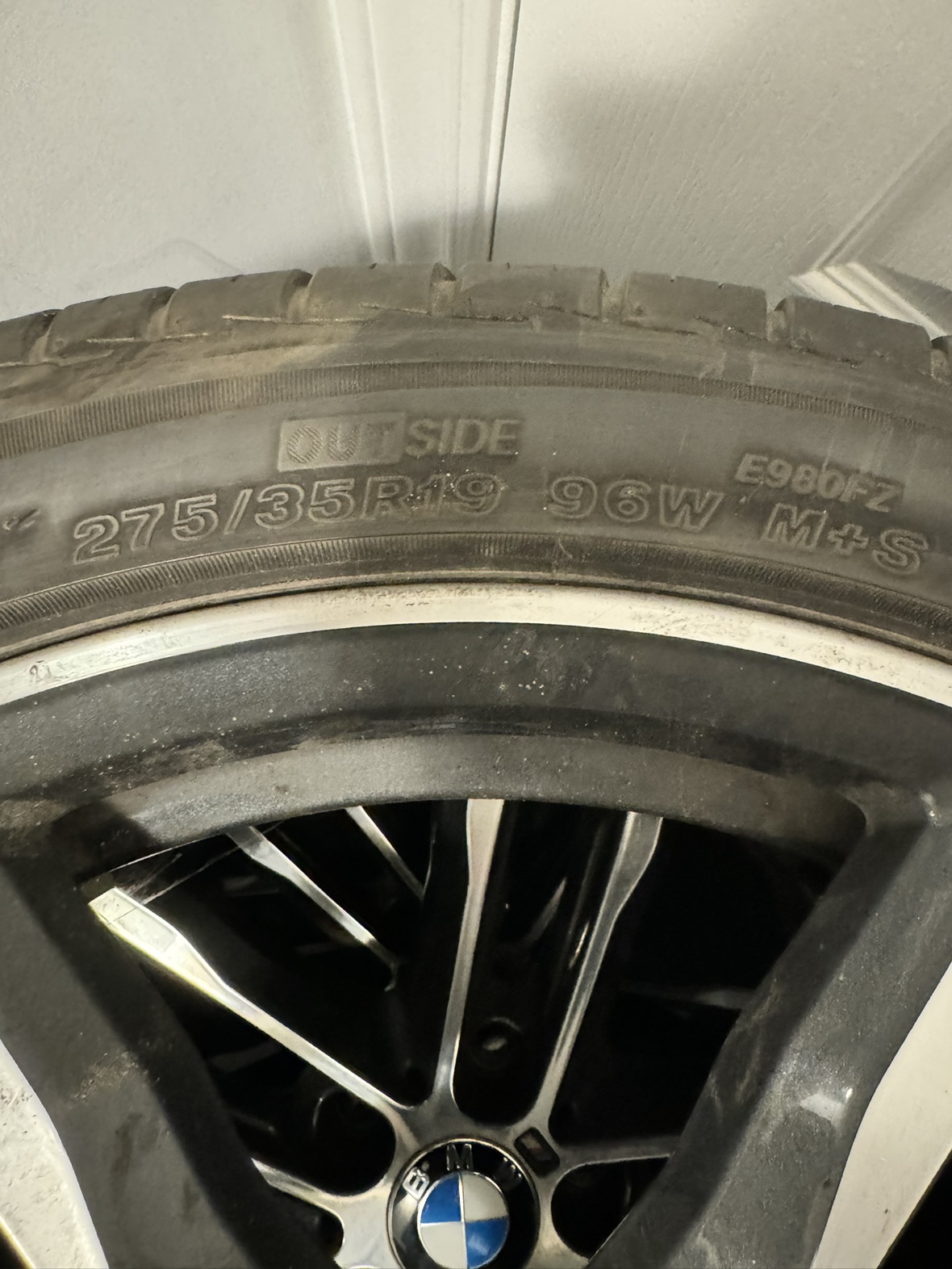 54Set of 4 19” BMW 3/4 Series Black Diamond cut alloy rims with Bridgestone tires installed. Rear wheels are 275/35R19 and the front wheels are 245/40R19. Tired and rims are in great condition asking $1000.