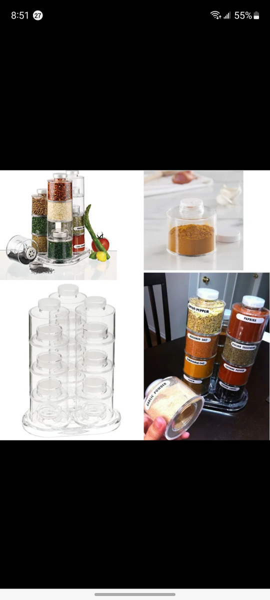 12 Brand New stackable plastic spice Jars with Spinning carasoul