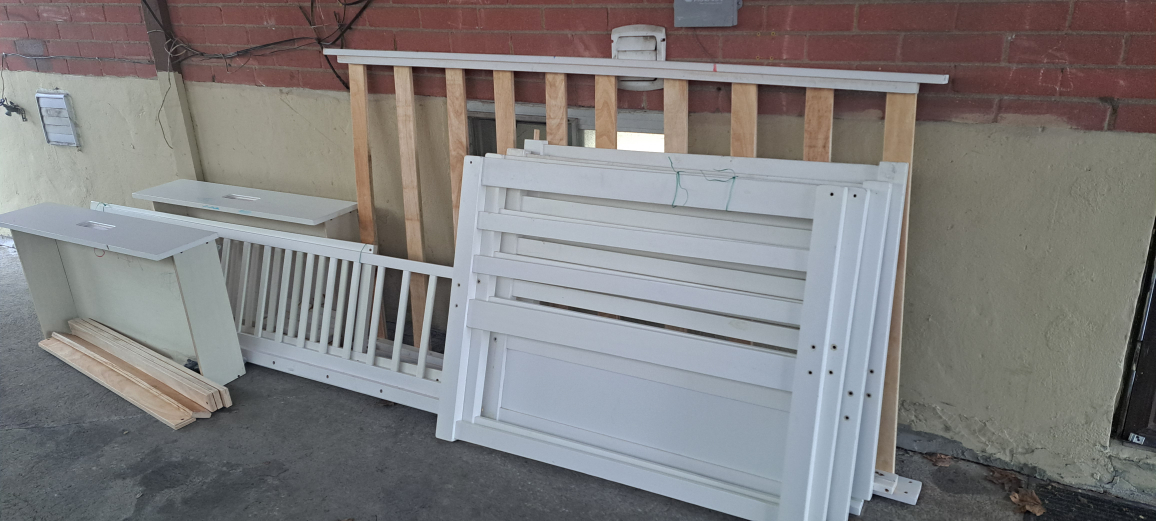 48Hello, My kids have overgrown from this bed, it was in store for sometime, hence selling right now. It's a twin by twin bunk bed, can also be assembled as 2 individual twin beds, good for kids. It's in dismantled stat now, You may have to get some screws/few connector for the top bunk, which is easily available at Home Depot. 1 Slat is used fair, rest is all in good usable condition. If interested please schedule pick up no shipping offered. It can easily fit in caravans/trucks.
