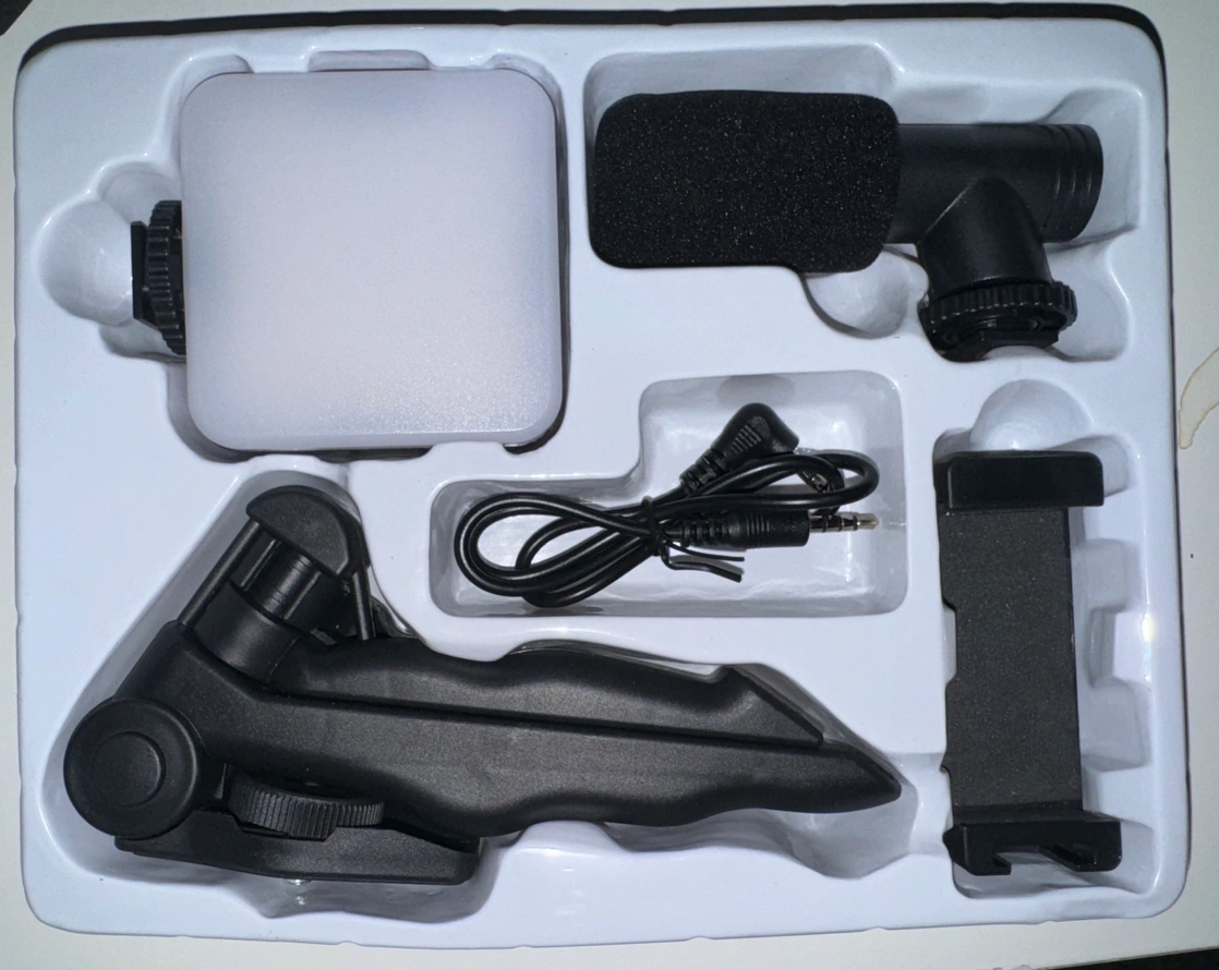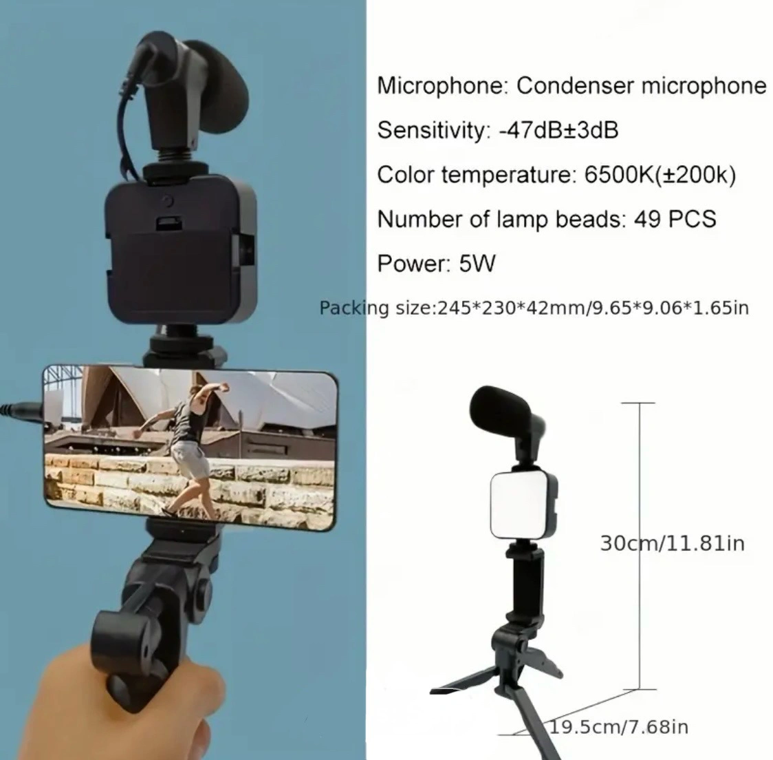 3.5mm microphone socket, 1 / 4 screw hot shoe, LED 49R, top interface, one hand grip, stable.