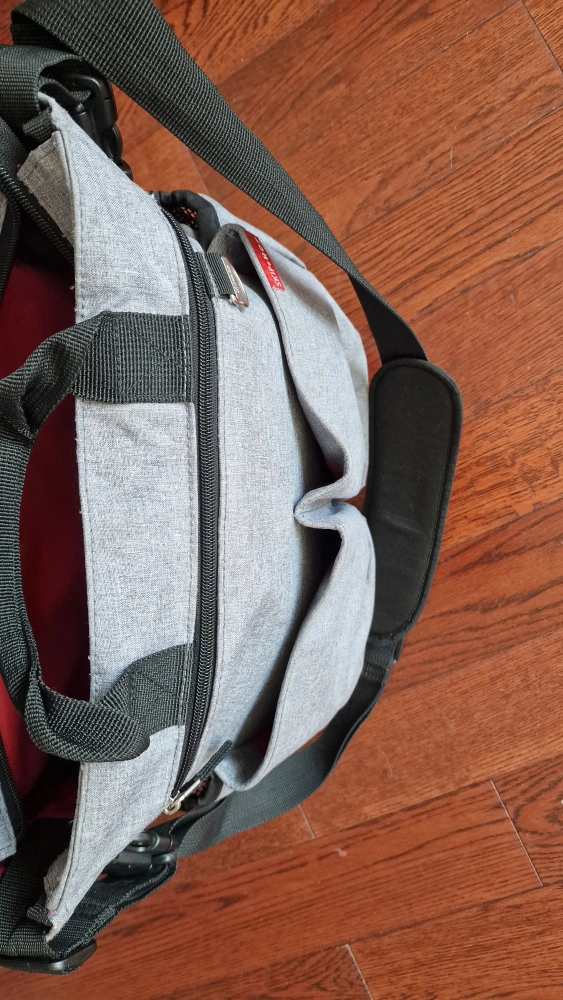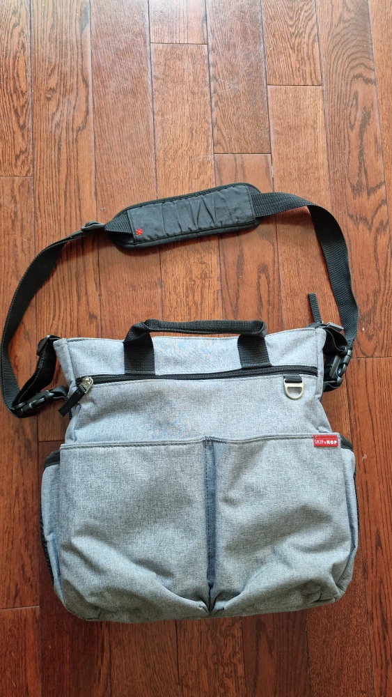 Selling a Skip Hop diaper bag in great condition! No wear and tear and looks new. It's a stylish and practical bag with lots of compartments to keep everything organized. The bag is grey with black straps and a red interior. Includes a black changing pad as well.