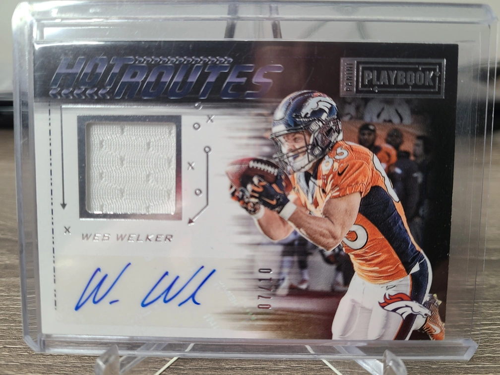 2016 Panini Playbook Wes Welker 07/10 SSP Patch Auto. $30 pickup is in Binbrook or shipping available at buyers expense.