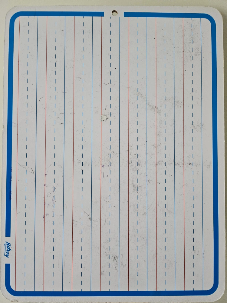 The white board is in good condition. there is a small mark on the lined side but that does not effect the usability of the product.