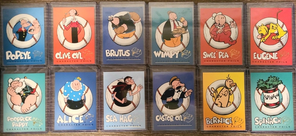 1994 Popeye Card Creations CHARACTER FOIL Complete Set of 12 Cards CF1-CF12. Rare Chase Card Set. $80 pickup is in Binbrook. Check out my other ads! Will do deals on bulk purchases.
