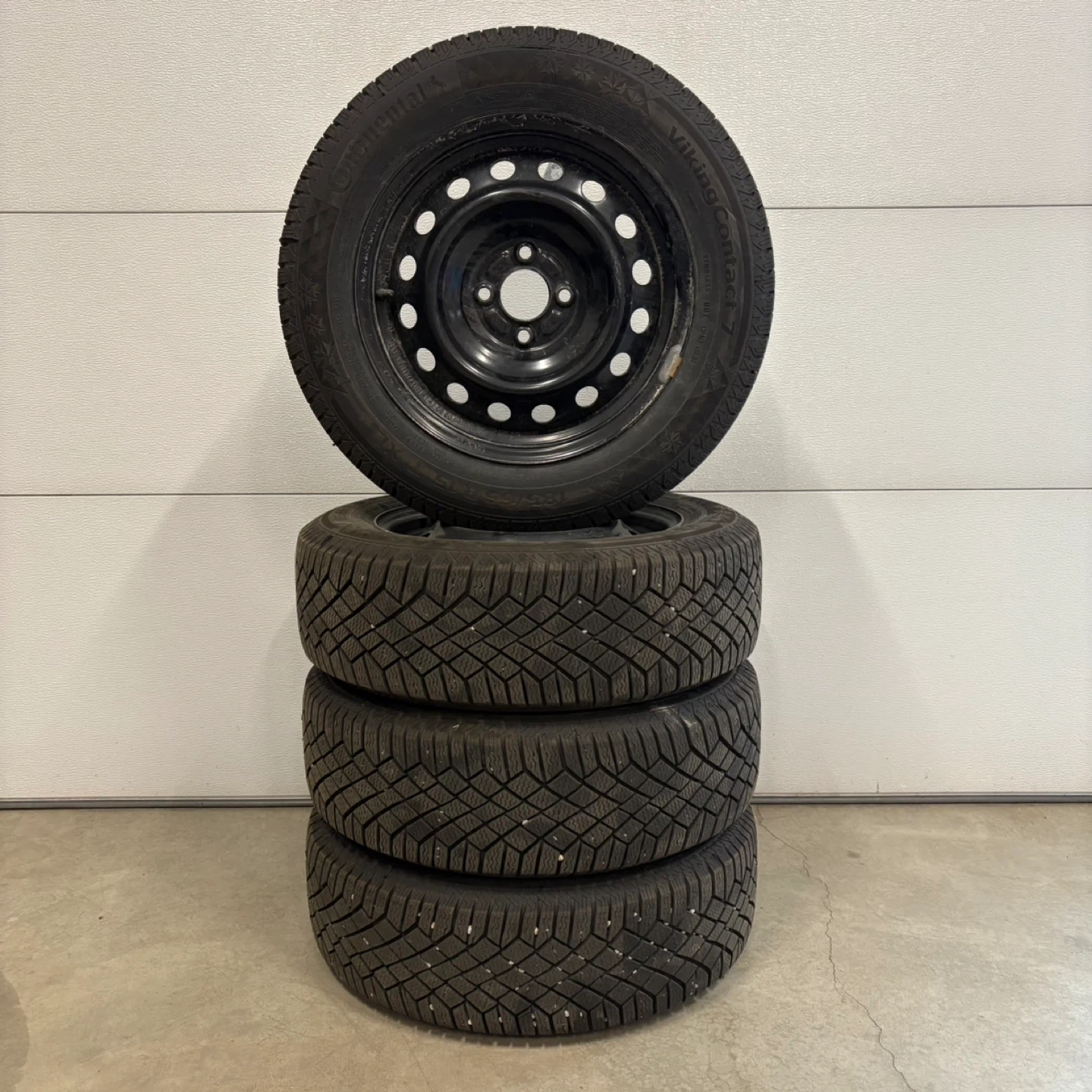 54Set of four 185/65R15 - 92T XL Continental VikingContact 7 winter tires mounted on black steel rims, in near-new condition with no repairs and stored in heated garage. Used for one winter on a 2016 Nissan Versa Note. Balanced and includes TPMS. Rim specifications • Size: 15x6 • Bolt pattern: 4x100 • Centre bore: 60.1 mm • Offset: 42 mm Tire specifications • Size: 185/65R15 • Load/Speed: 92T XL • DOT: 17th week of 2024 • Tread depth: 10/32nds Please confirm vehicle fitment before contacting. Priced 40% off compared to a new set. Pick up available in Mount Pleasant.