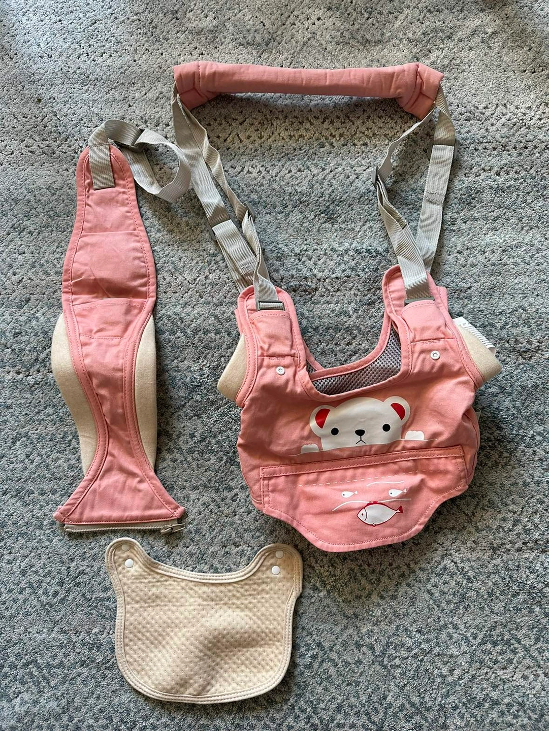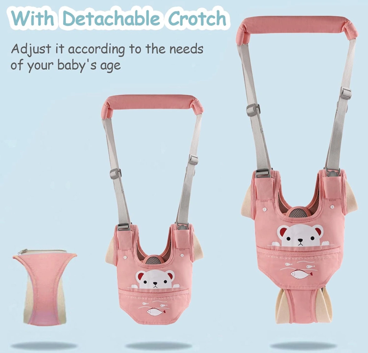 USED ONCE! Smoke free and Pet free home. 9-24 Months. Help and guide your baby to stand, walk and stay balanced in a comfortable way. Safely guide the baby to walk or stand without backpain. Zipper closure design on the stall, make the crotch not fall off, easy to remove and install, easy to clean.