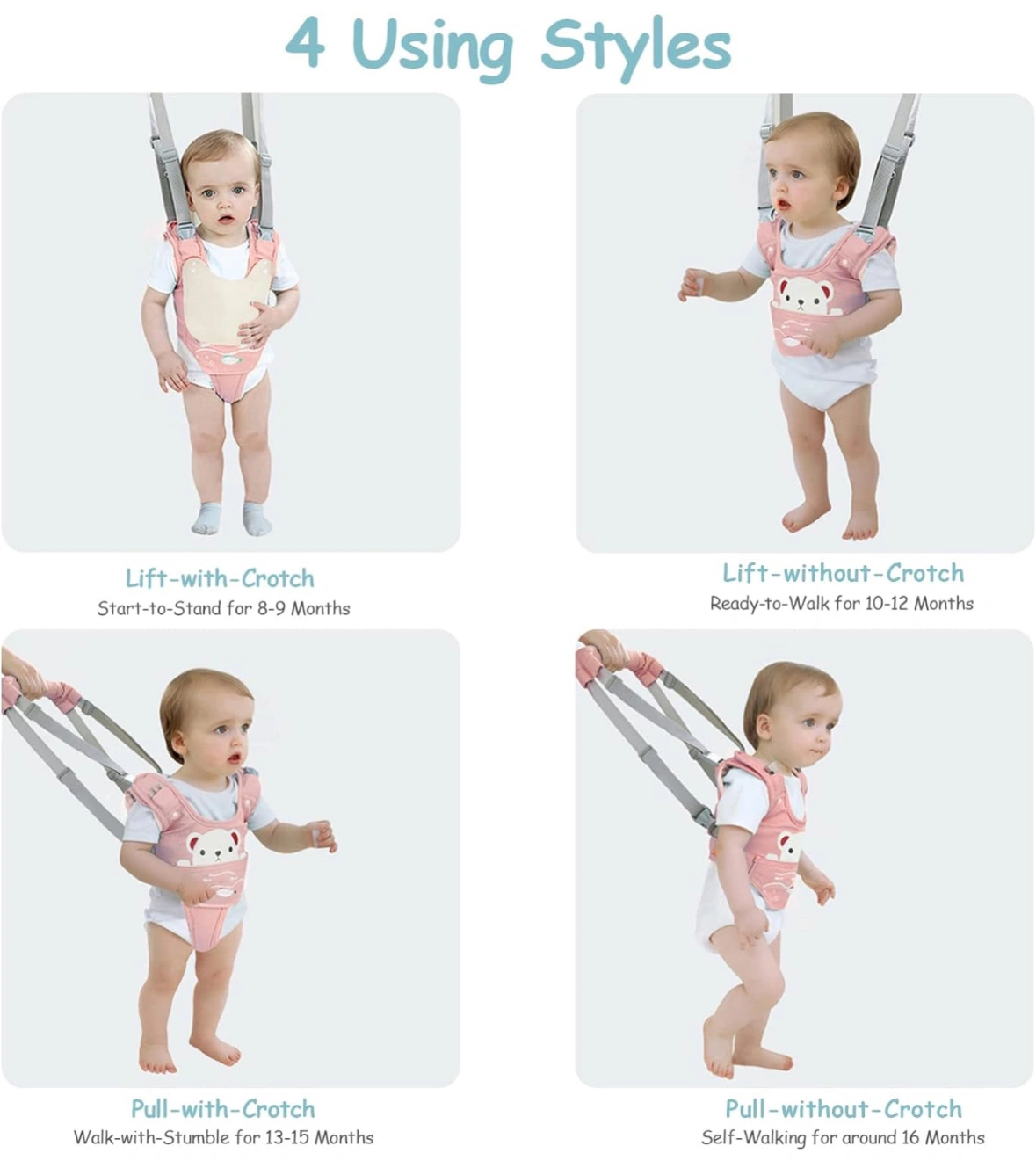 USED ONCE! Smoke free and Pet free home. 9-24 Months. Help and guide your baby to stand, walk and stay balanced in a comfortable way. Safely guide the baby to walk or stand without backpain. Zipper closure design on the stall, make the crotch not fall off, easy to remove and install, easy to clean.
