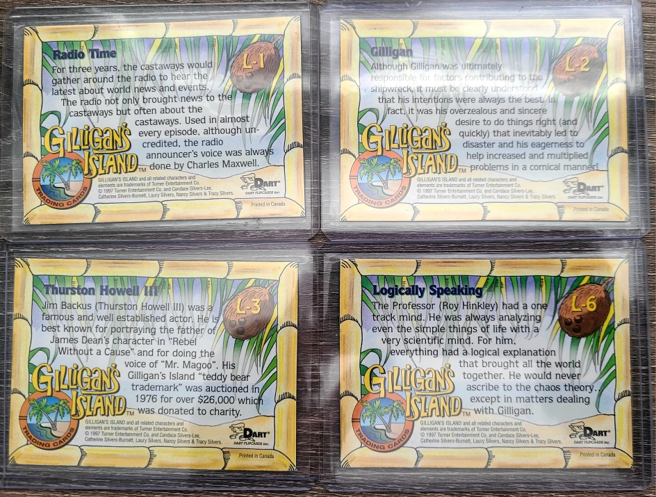 GILLIGAN'S ISLAND PREMIUM Dart Lenticular FLIPCARDS. Extremely rare Chase Cards. 4 Cards out of 6. L1,L2,L3,L6. $50 Pickup is in Binbrook or shipping available at buyers expense. Check out my other ads!!!