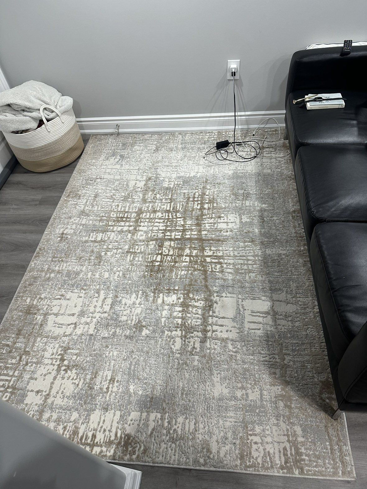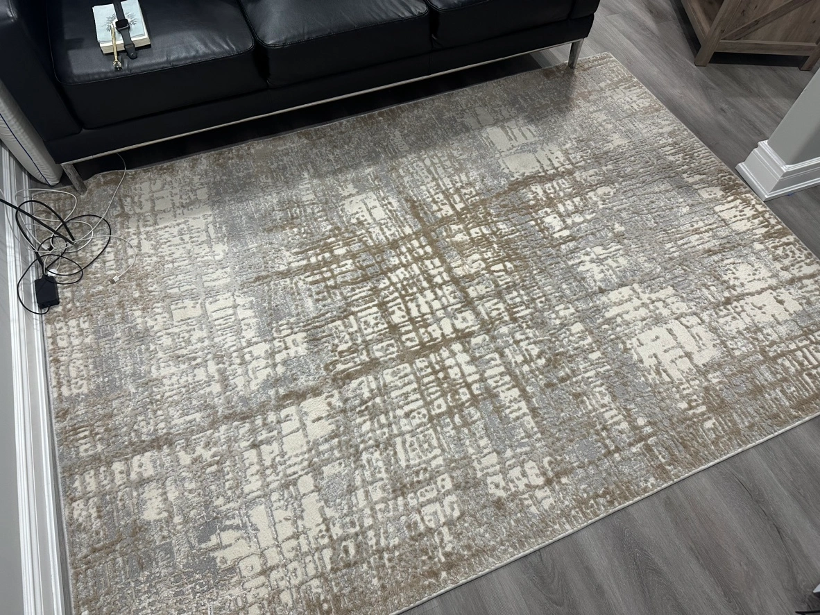 Calvin Klein Rug. Very beautiful, very modern. Ivory/ Taupe colour. Excellent condition. Looks new. Barely used. Bought 6 months ago. Size is: 5 feet 3 inches x 7 feet 3 inches.