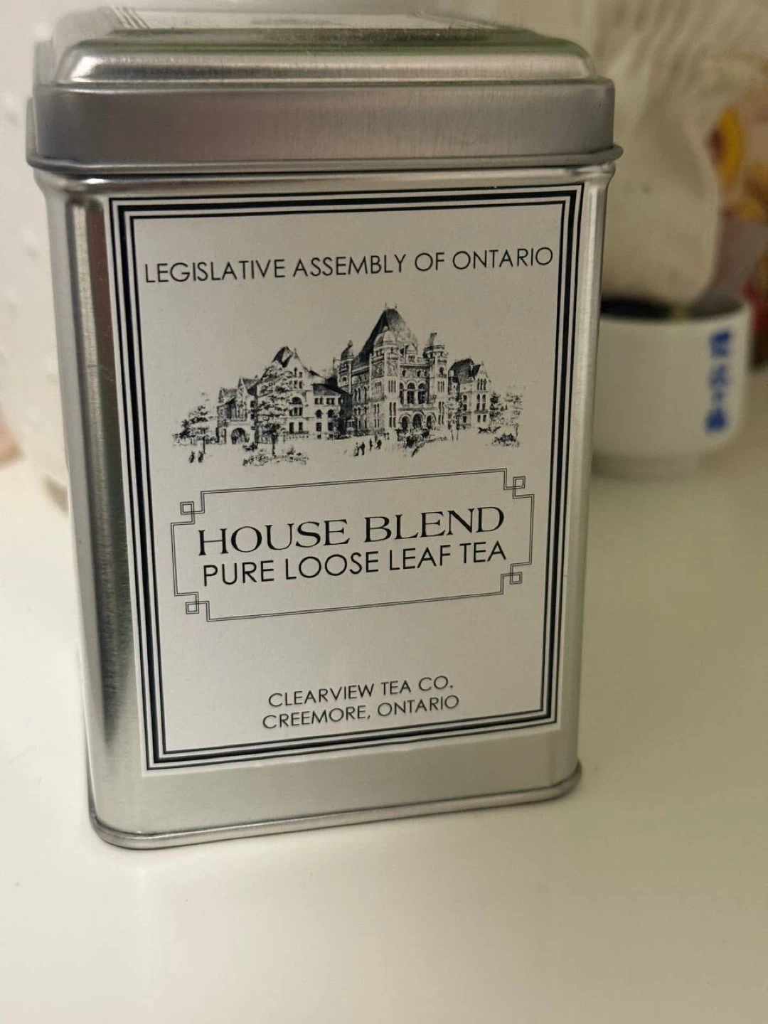 Brand new House Blend pure loose leaf tea from Clearview Tea Co., Creemore, Ontario, created for the Legislative Assembly of Ontario.