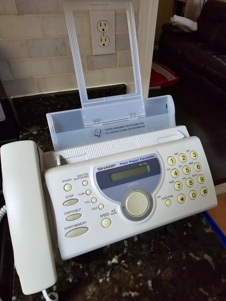 Sharp UX-P115 Fax Machine with phone. Great little machine that works like new. Will need new imaging film as used film will be removed before selling. Great for a small business or office who still need to send or recieve fax.