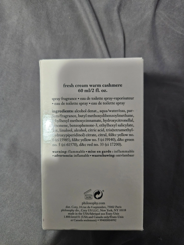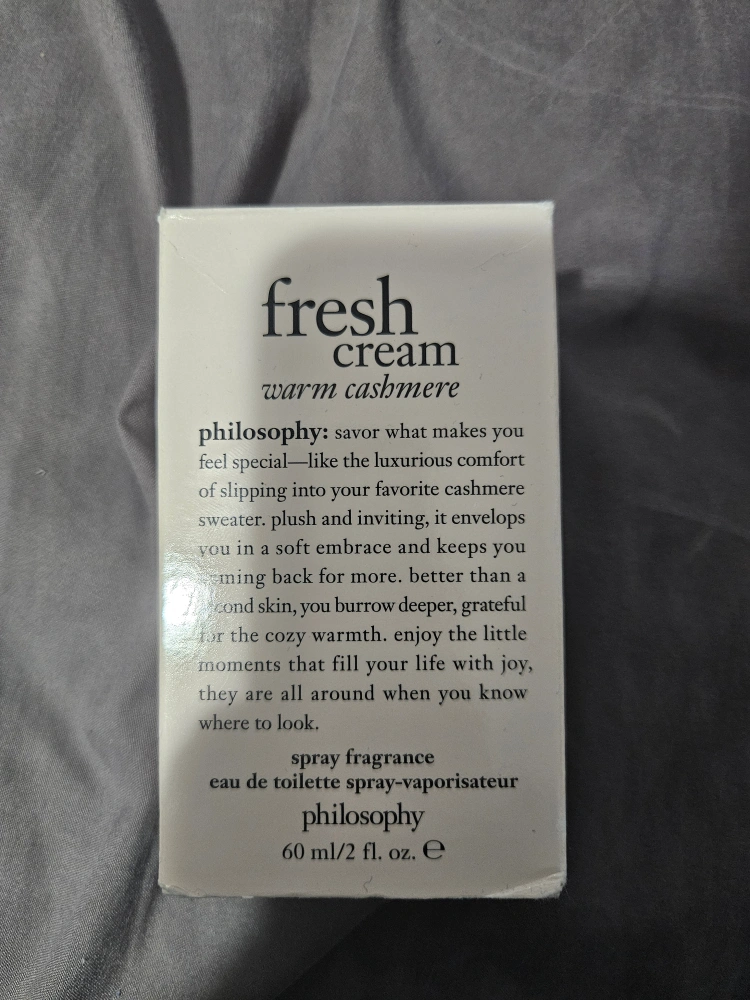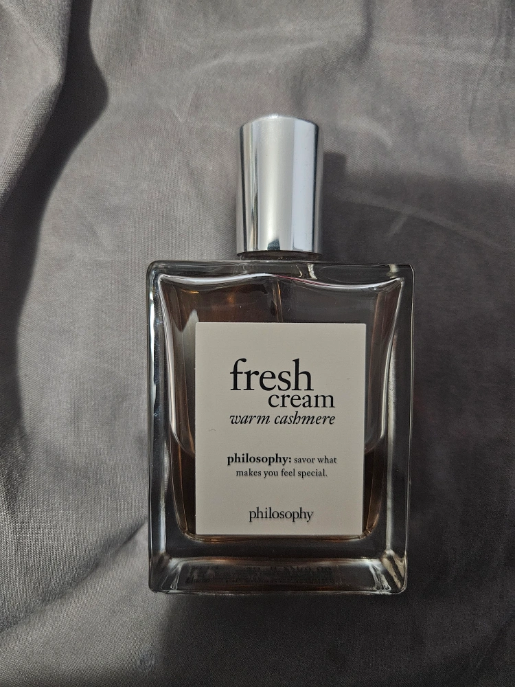Fresh creme warm cashmere perfume by the brand Philosophy. Beautiful smokey vanilla scent. Selling because I just don't use it anymore. The bottle is nearly full. Retails for 72$ at shoppers drug mart and has a 4.6 star rating.
