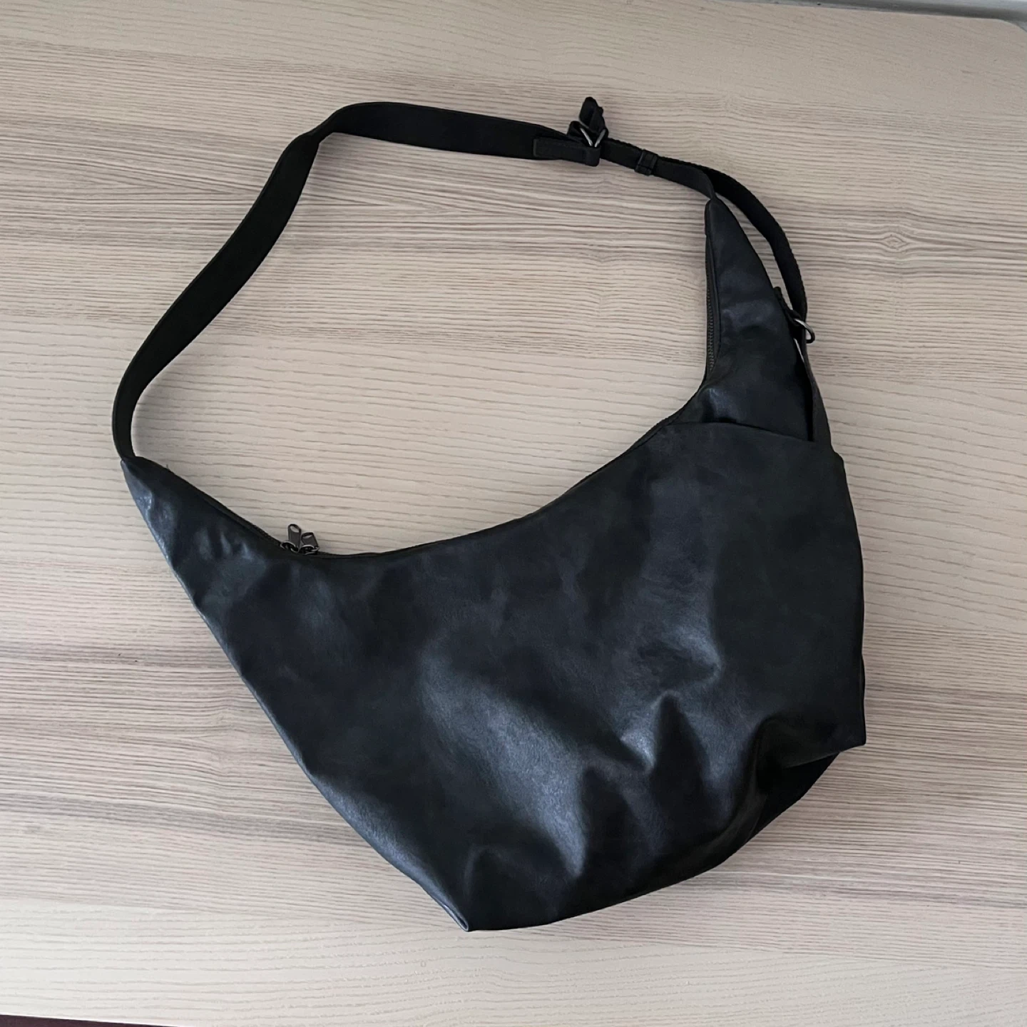 Selling a stylish black sling bag from a Japanese brand! I bought in in Tokyo. It's in great condition and perfect for carrying your essentials around town. The adjustable strap ensures a comfortable fit, and the sleek design goes with everything. Large capacity