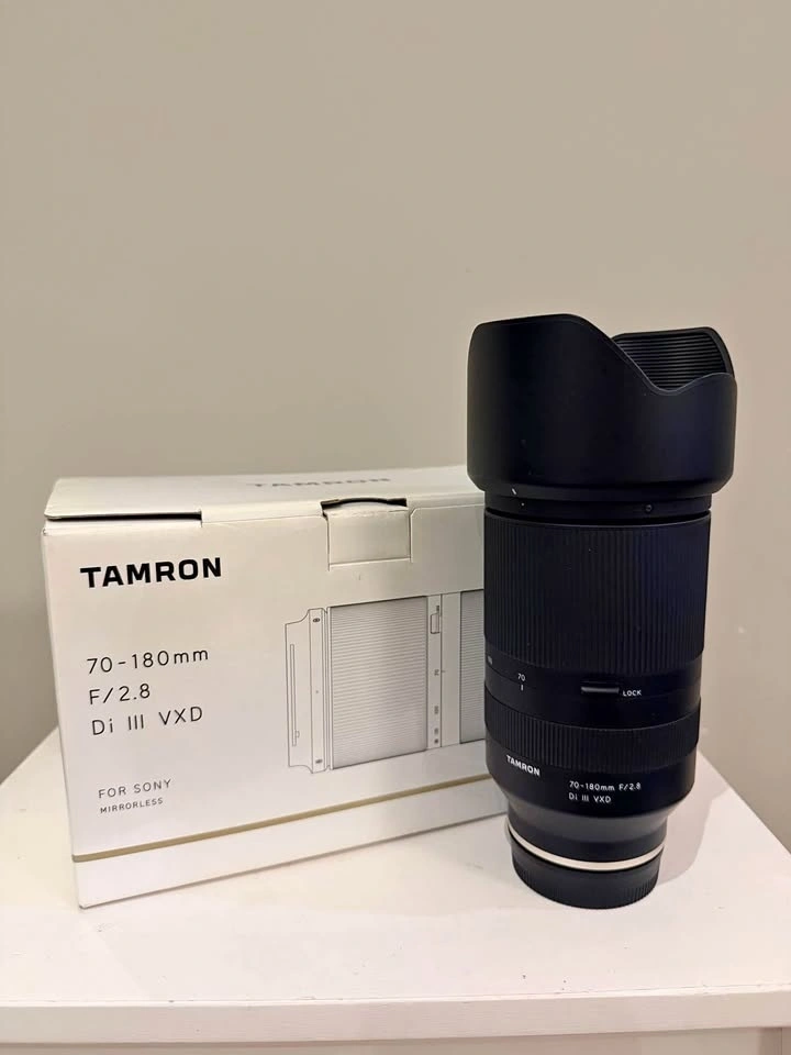 Available for pickup at King George and 62 Ave, Surrey. This Tamron 70-180mm F2.8 Di III VXD lens comes with its original box, front and rear caps, and manuals. It's in excellent condition, with no scratches, dents, or dust. I'm also selling other camera gear, including a Sony a7iii, Sony E-Mount FE 1.8/50mm, Tamron 28-75 F2.8, and a Sony ZEISS E-mount FE 4/16-35mm.