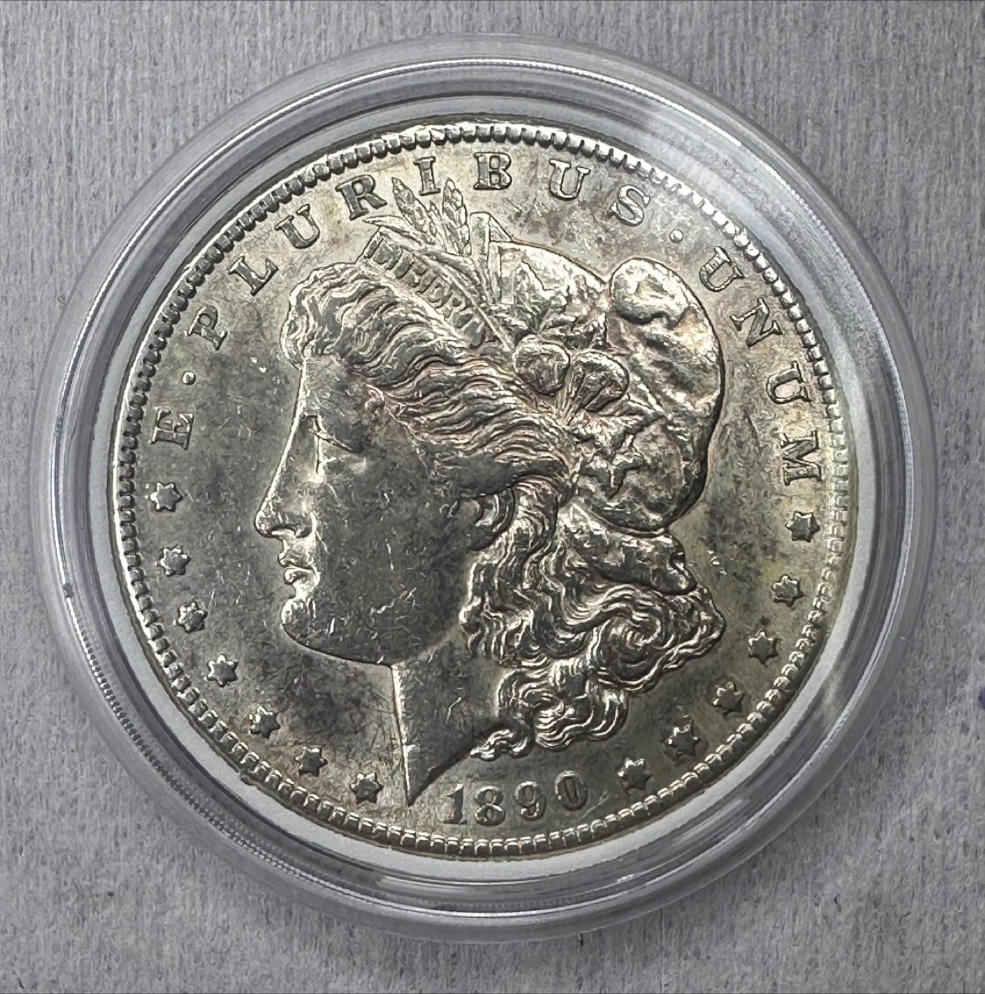 Selling an authentic USA Morgan Silver Dollar, dated 1890-S. It's in AU-55 condition and encased in a protective holder. A great addition to any coin collection!. Please take a look at other listings and put together a bundle for great savings 🥰 Pick up is Eglinton Ave/ McCowan rd area.