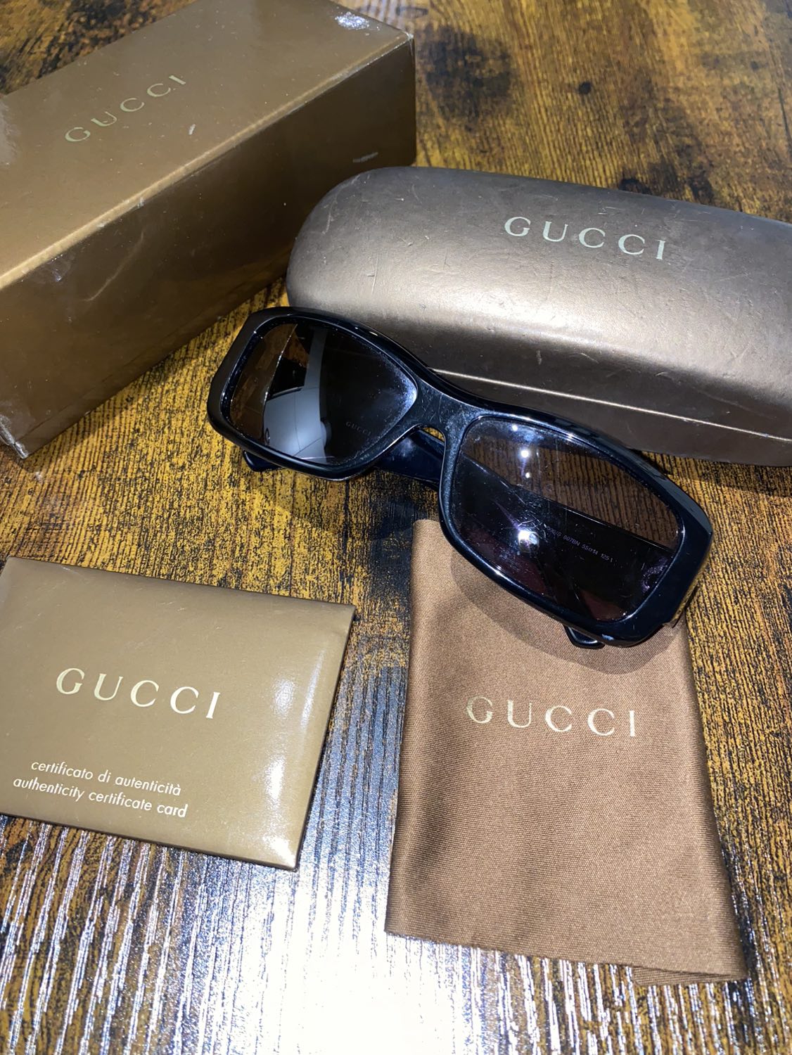 Comes with box, authentication card, sunglasses case and cloth.