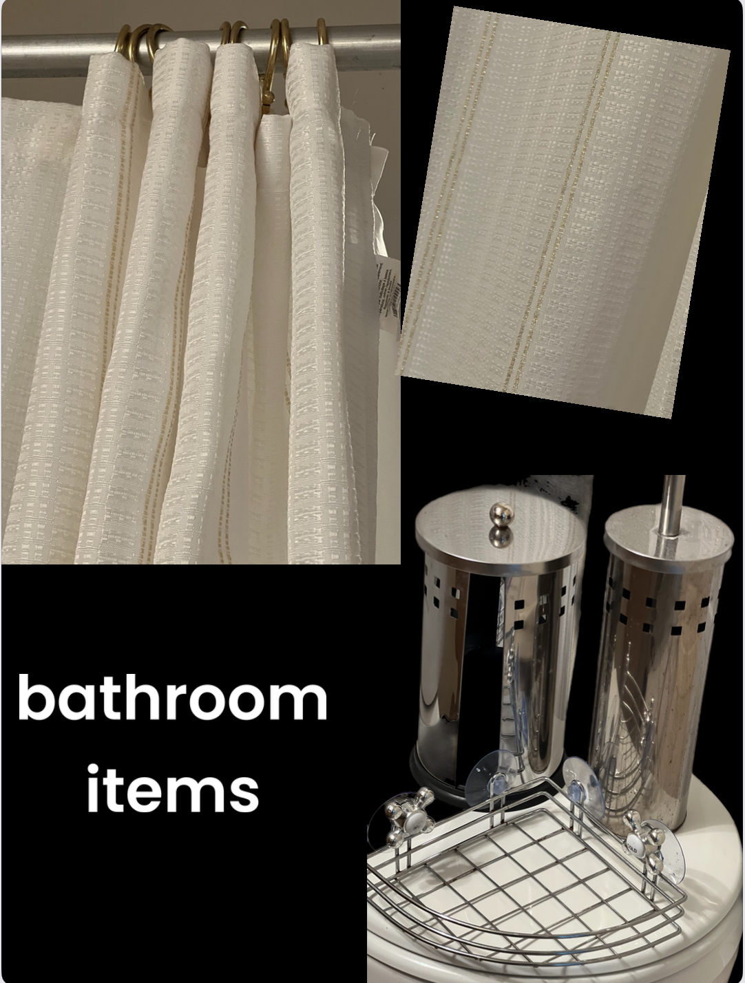 Buy & SellBathroom ItemsBathroom Items$154 bathroom items Curtain - Good conditionConditionLike new1 chats·0 favorites·23 viewsSELLERCristinaYaletown10010 reviewsWHERE TO MEETCheck Location