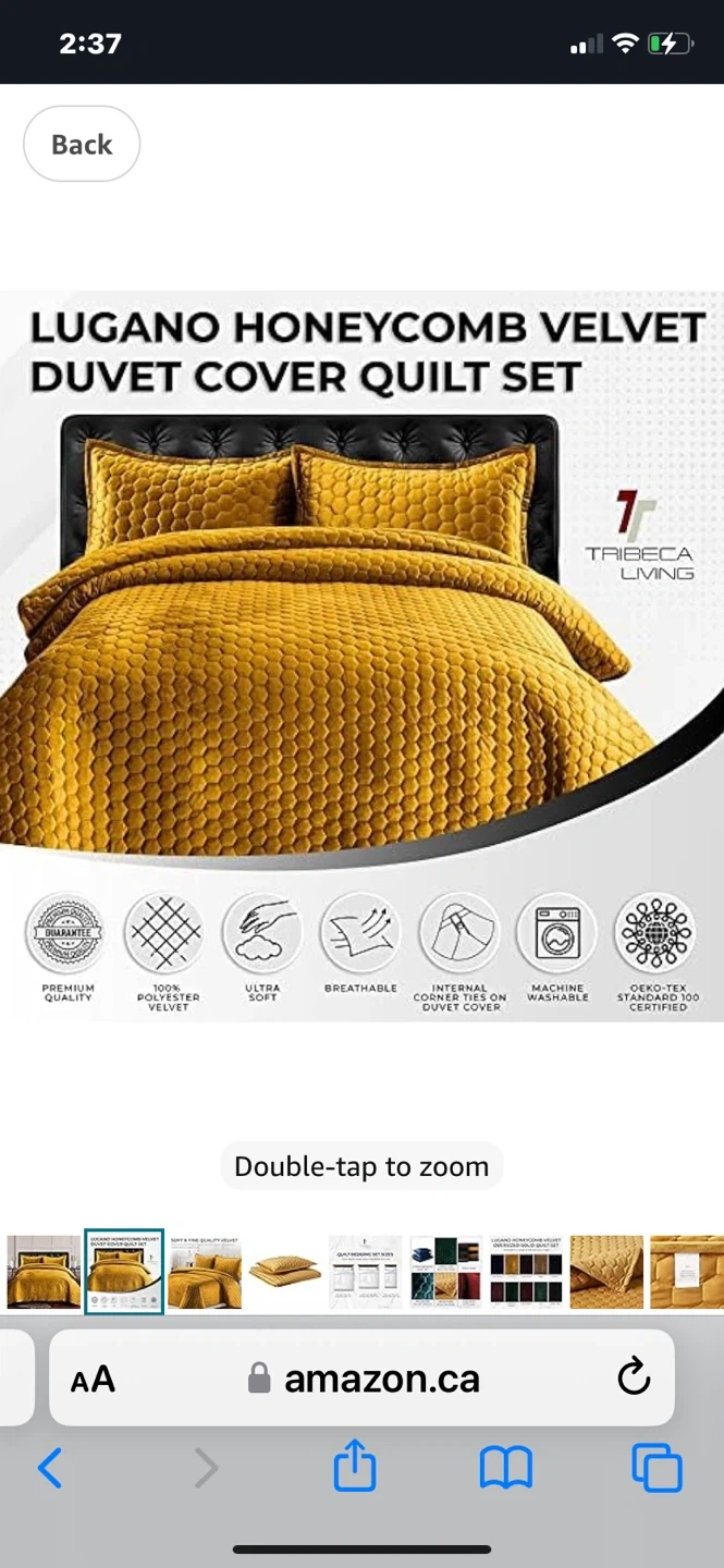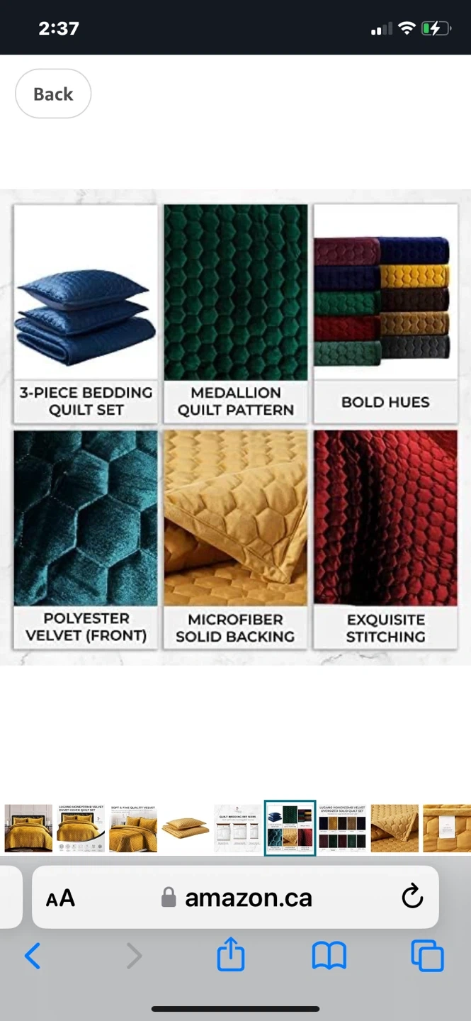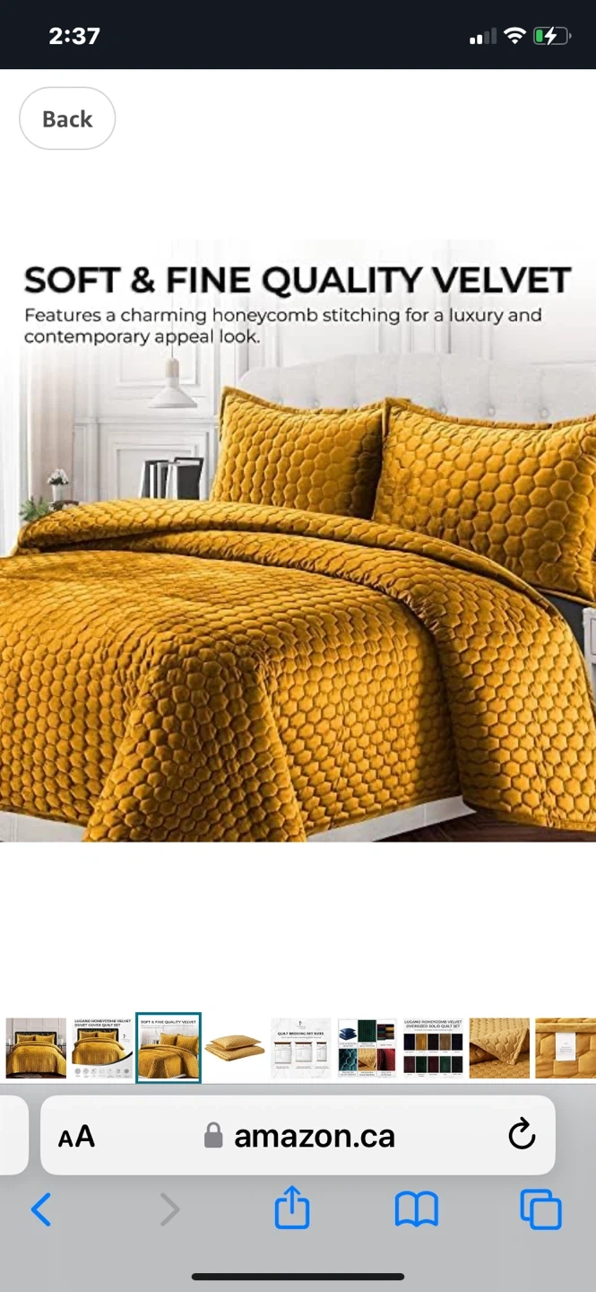 This queen oversized quilt set features a unique honeycomb stitching. It's made with 260-GSM velvet on the front and 110-GSM microfiber on the back. The set includes one quilt and two standard shams.
