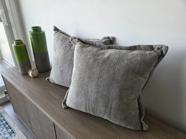 Set of 5 mixed decorative pillows. Great accent colors for your couch, bed, or chairs. Pet-free, smoke-free, pest-free. No rips or stains. Please bring exact change. Local pickup only.