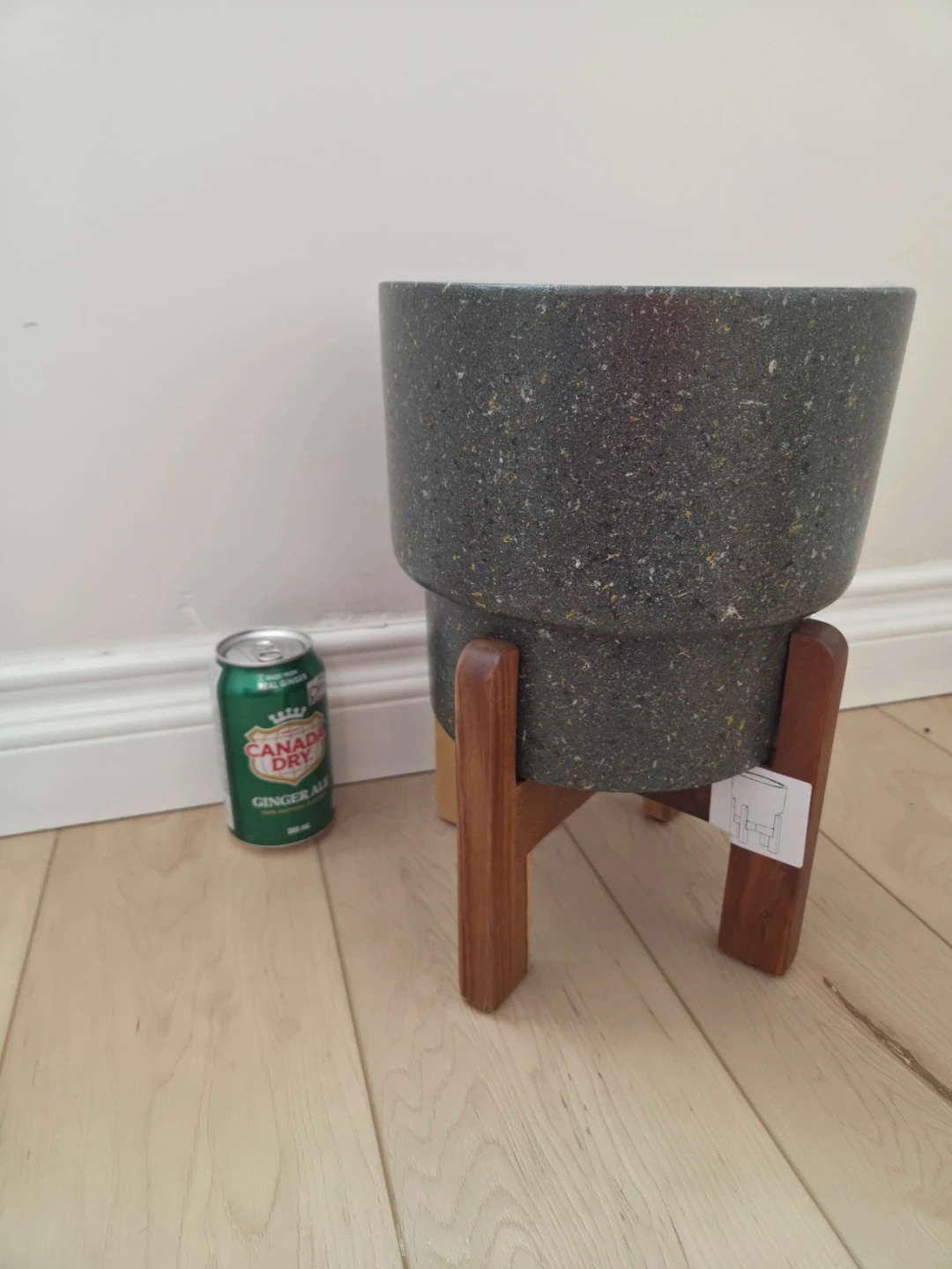 Speckled Grey Planter Pot with Wooden Stand