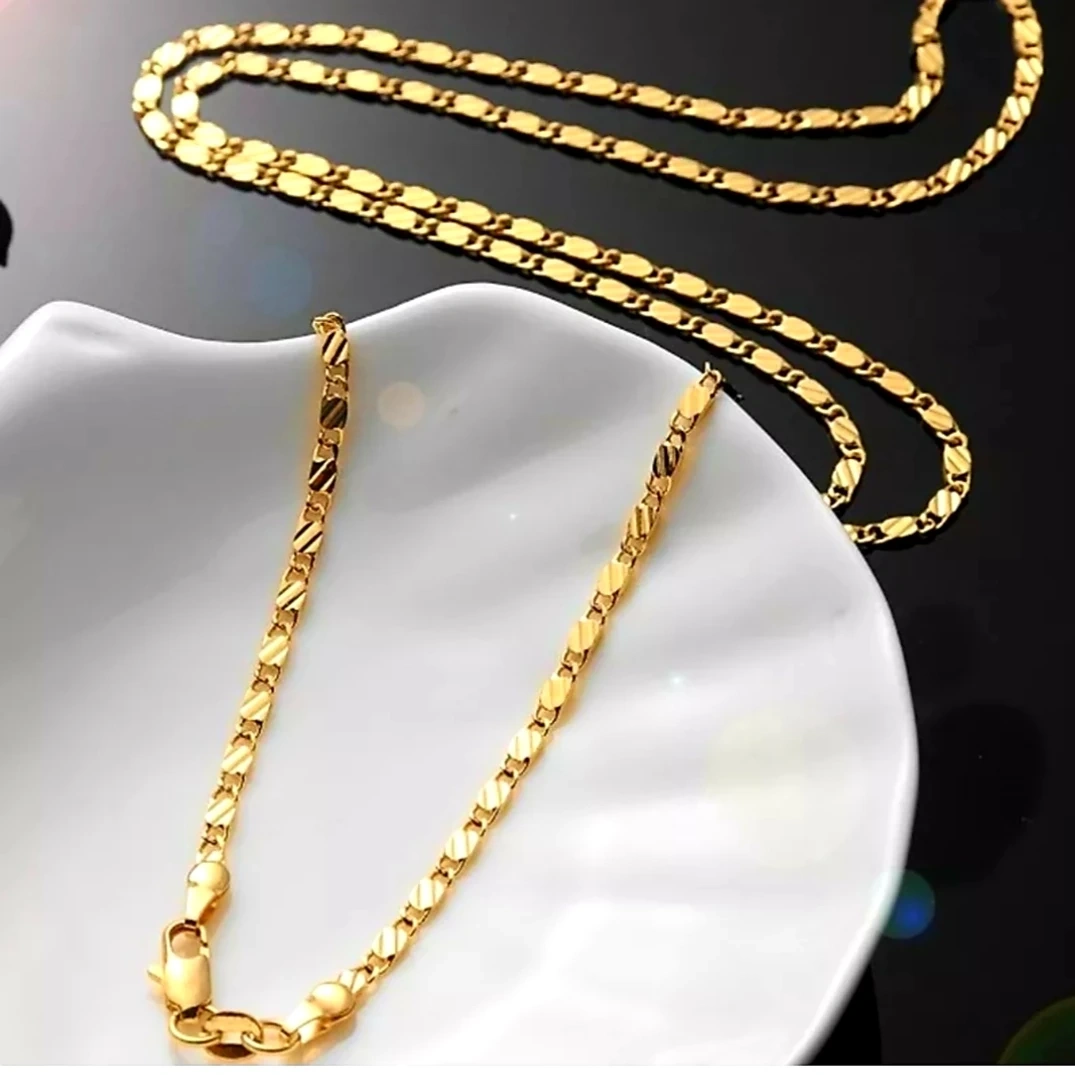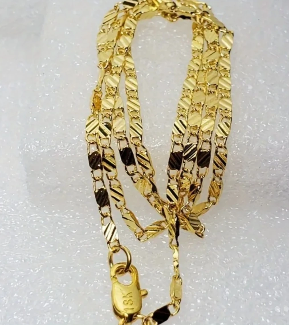 56Selling a beautiful 18K gold chain necklace. It's in brand new condition and would make a lovely addition to any jewelry collection. 18k gold plated,24inc.