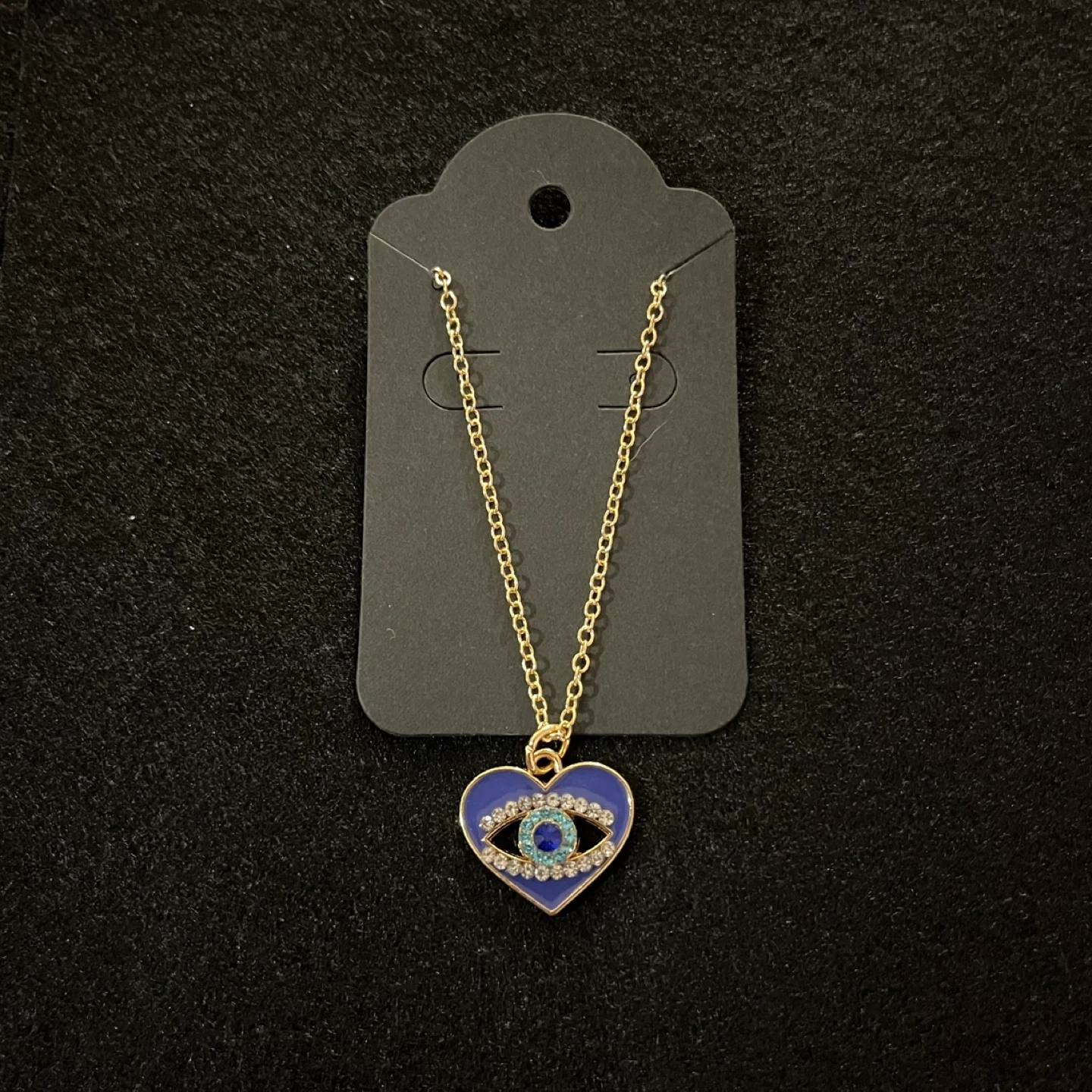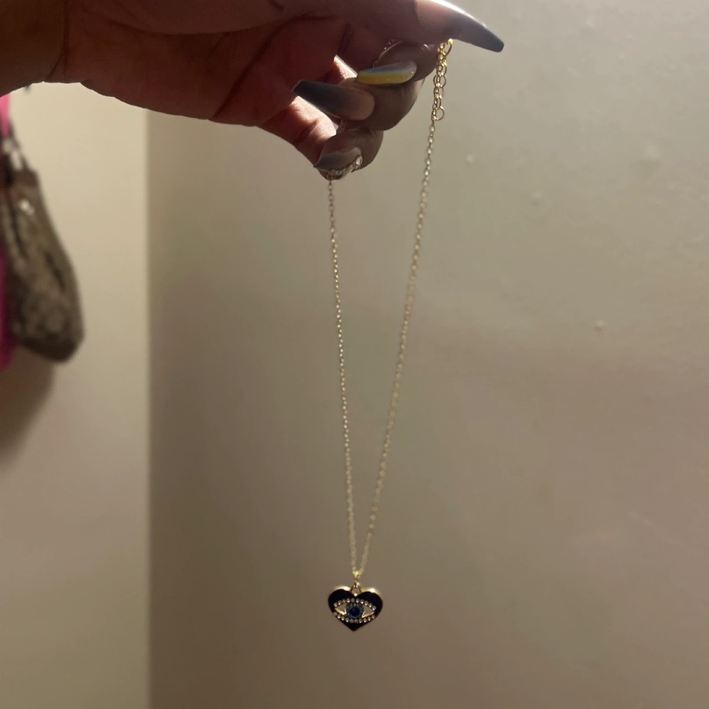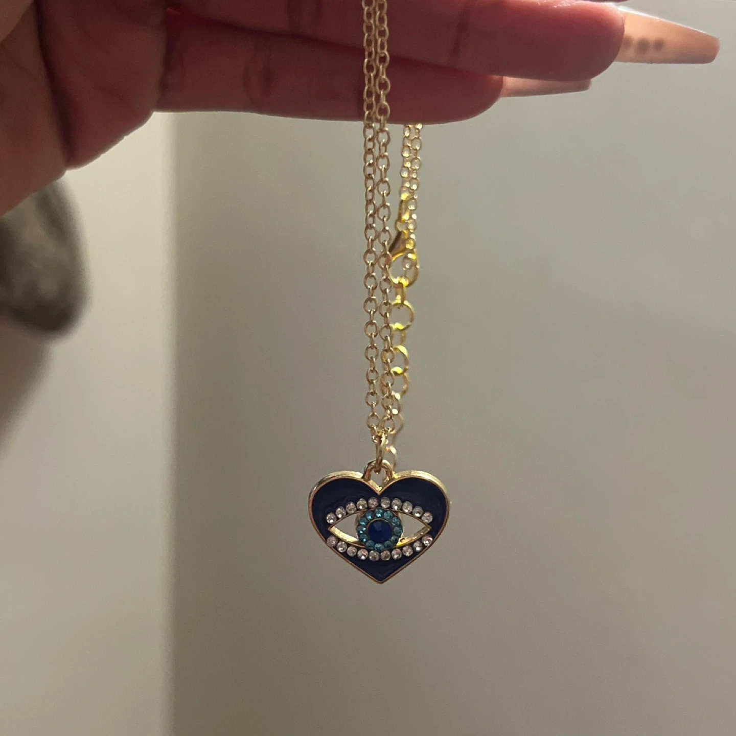 774Cute 18k gold plated heart-shaped evil eye necklace with a blue and gold colour scheme! Perfect for adding a touch of charm to any outfit and warding off any evil eye sent your way! Pendant sits just below the collarbone! π A blue evil eye is a powerful symbol believed to offer protection against the evil eye curse, which is a malevolent glare often caused by envy. It is associated with good luck, tranquility, and spiritual protection π Let me know if interested in purchasing from me thx ππ Pick up only βΊοΈ (available between 11am-6pm) Located at Queen and Sherbourne intersection π Check out my listings for more deals! π€© π₯ Bundle items for a discounted price (excluding items $5 and under)π₯
