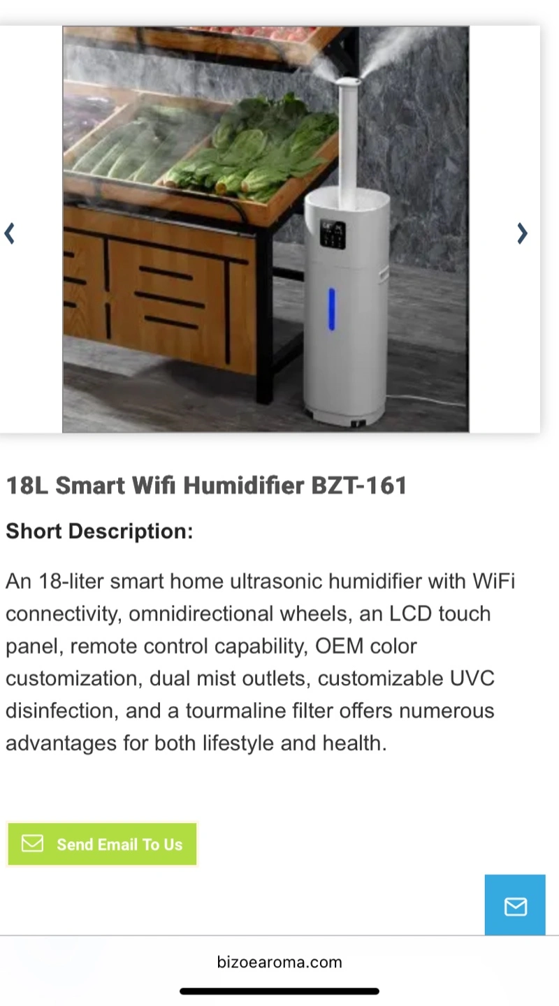 18-liter smart home ultrasonic humidifier. omnidirectional wheels, LCD touch panel, remote control capability, customizable UVC disinfection, tourmaline filter. Numerous lifestyle and health advantages.