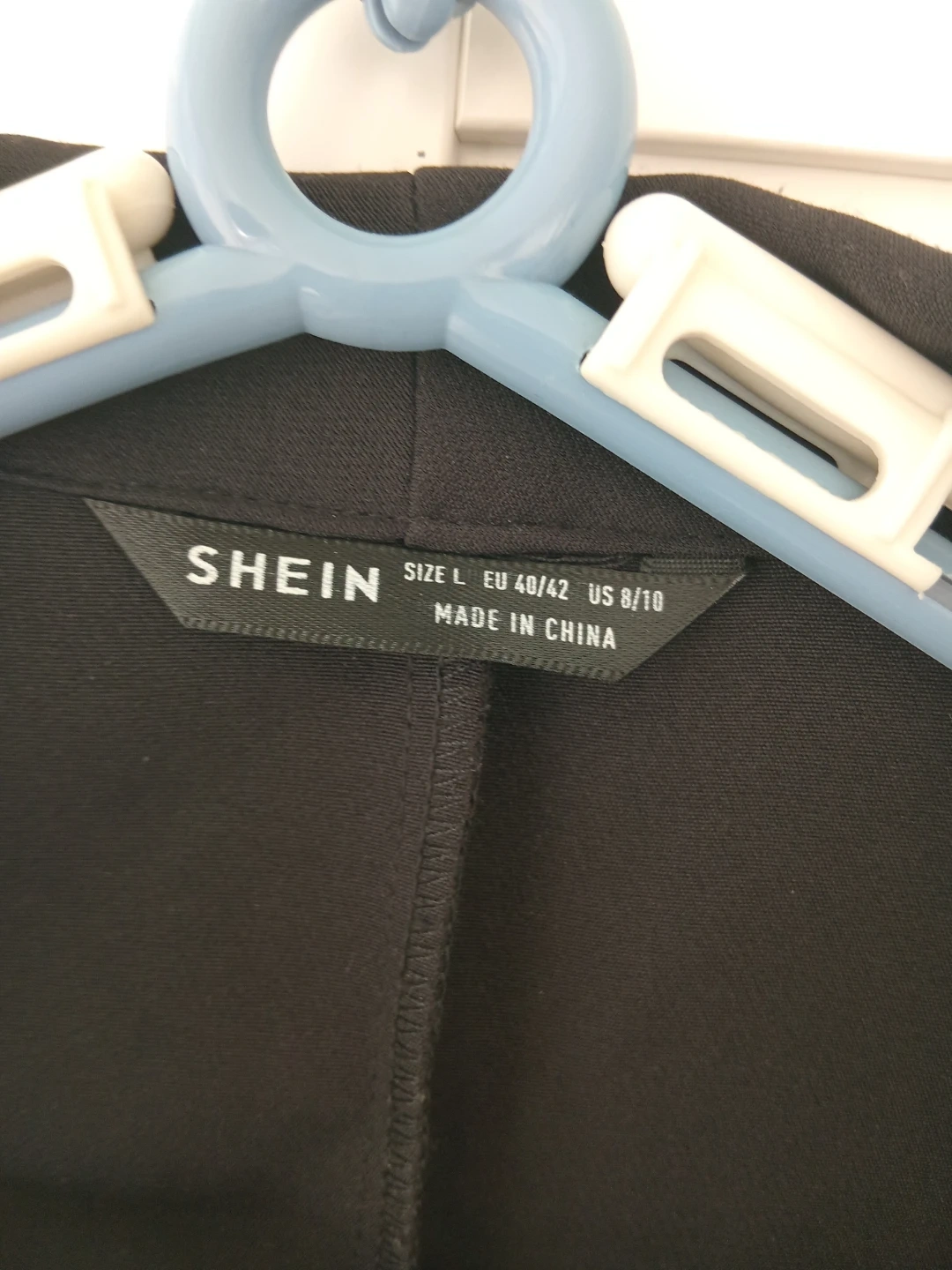 Black sleeveless vest from SHEIN. Size L, EU 40/42, US 8/10. Made in China. Perfect for layering over outfits!