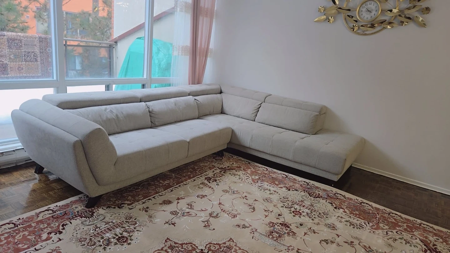 Modern light grey fabric sectional sofa purchased from The Brick (originally over $2,000 without tax).