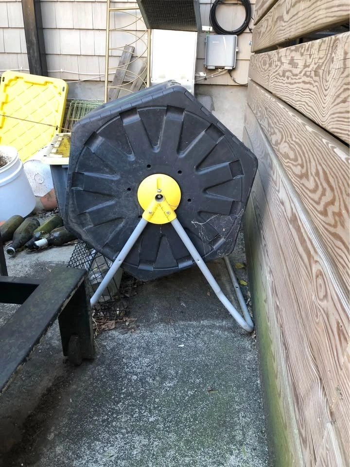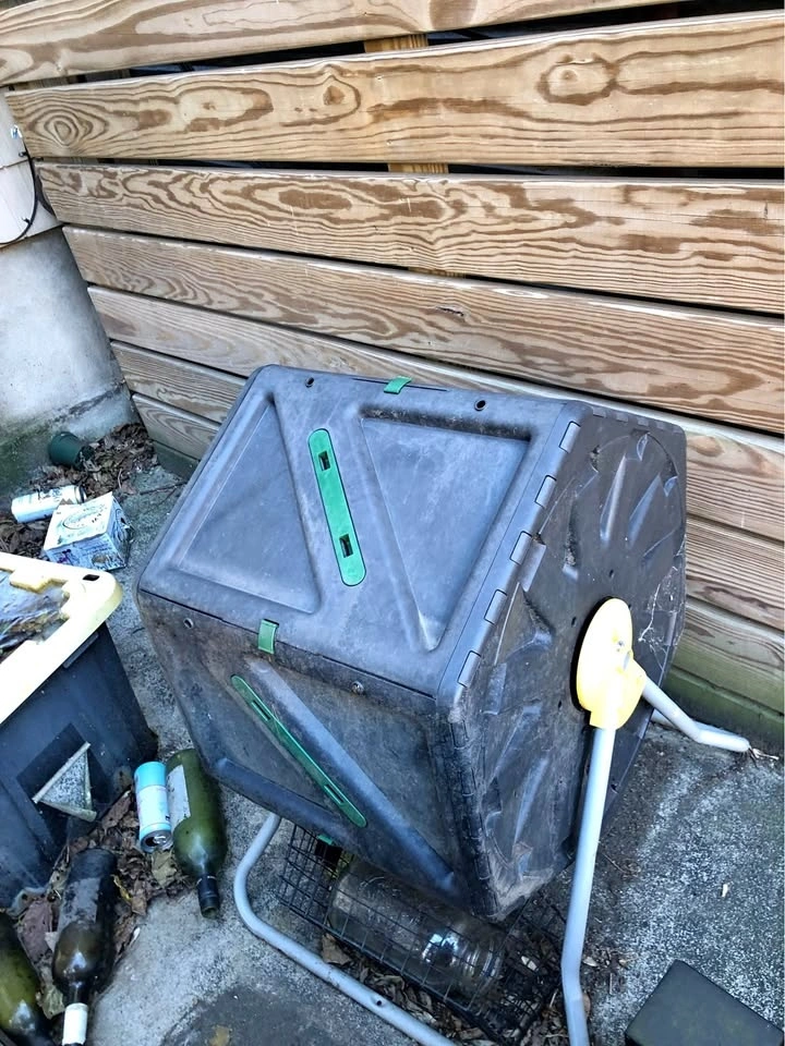 27 gallon outdoor composting tumbler. Normal wear and tear. Empty.