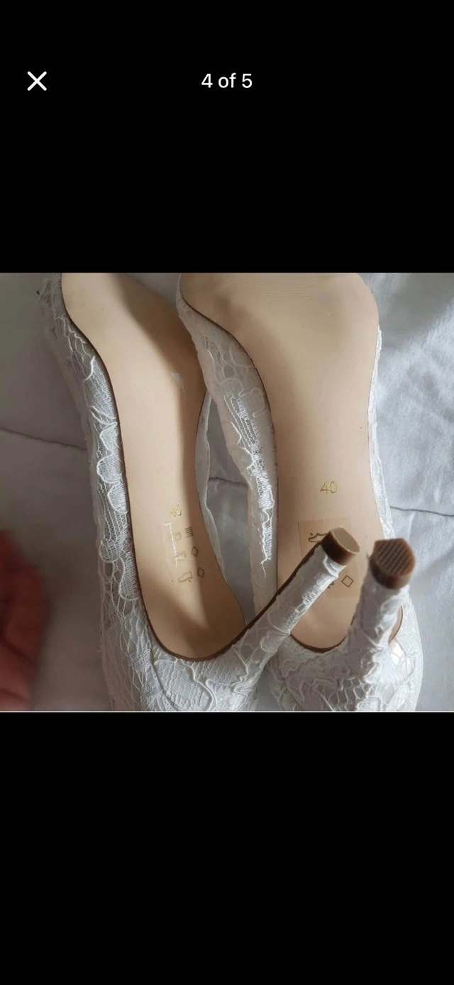 These Le Chateau heels are a European size 40, adorned with intricate lace and sparkling jewel embellishments, perfect for adding a touch of elegance to any special occasion outfit. These shoes are in good condition, ready to make you feel like Cinderella! Brand: Le Chateau Size: European 40 (approximately US 9) Colour: White Detail: Lace overlay with jewel embellishments If this ad is still up, the item is available! Don't be shy, these heels are waiting for their next grand adventure!