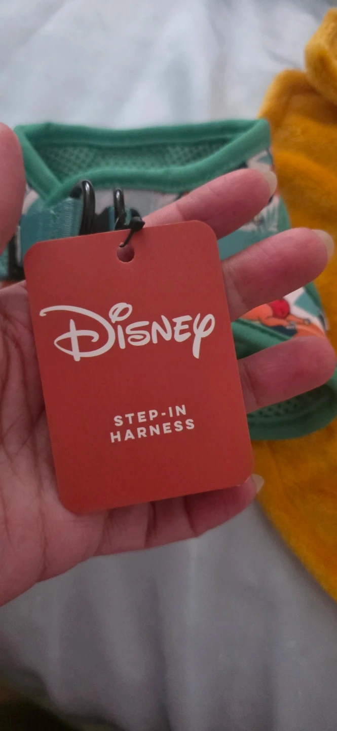 This Disney The Lion King pet apparel and step-in harness set is designed for your furry friend. The apparel is made of soft, fuzzy material, and the harness features a vibrant jungle-themed print. Both items are officially licensed by Disney. SIZE S