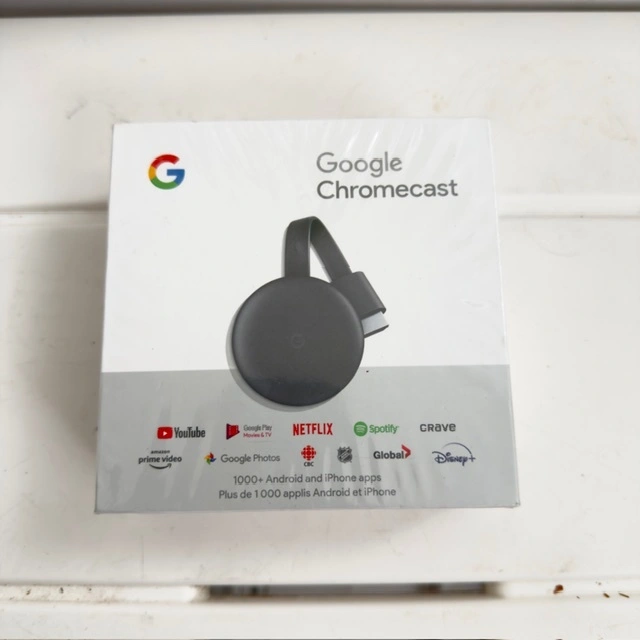 Selling a brand new Google Chromecast! It's still in its original packaging and ready to stream all your favorite shows from YouTube, Netflix, Spotify, and more. It also supports Google Photos, CBC, Global, and Disney+!