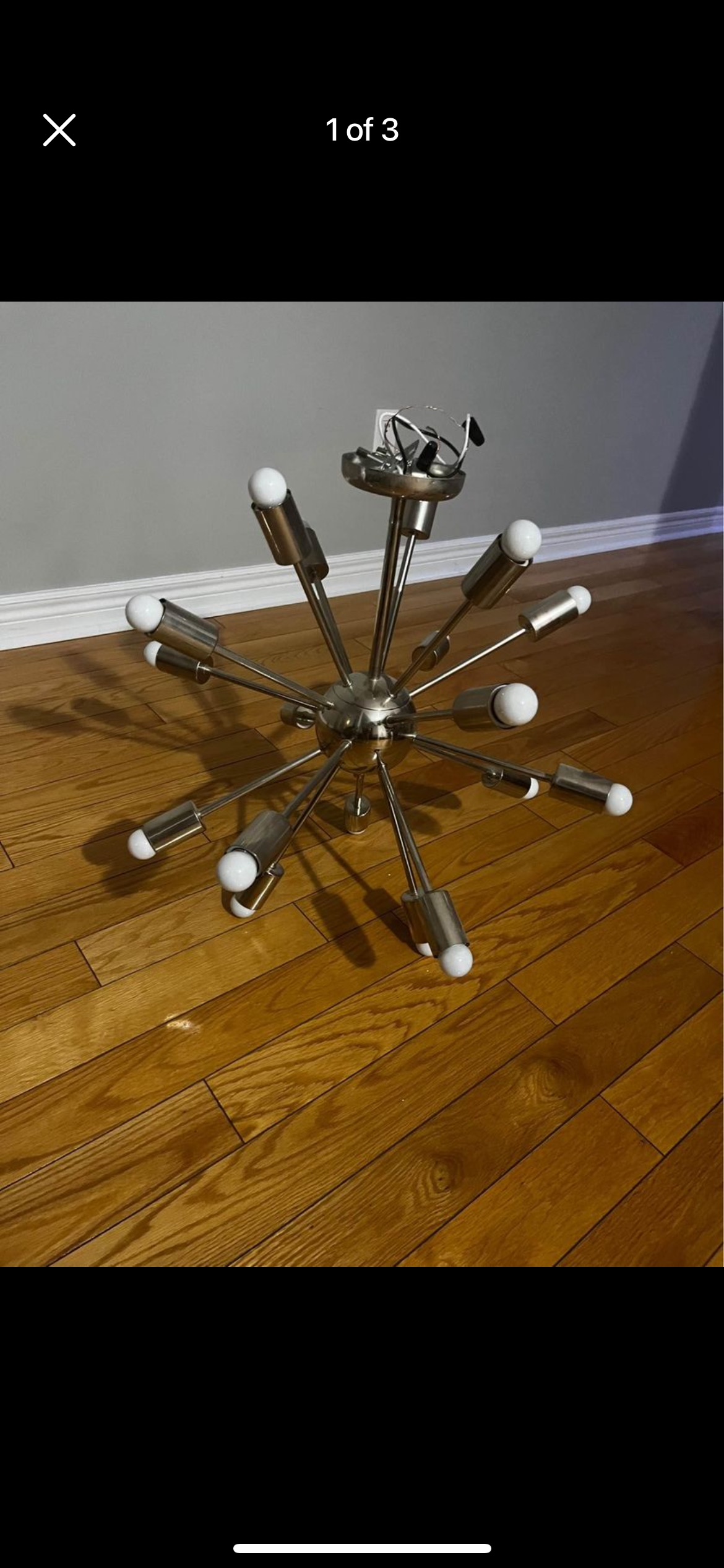 This beautiful 18-light chandelier adds a vintage piece with a modern twist to your space. With 18 lights and a beautiful polished nickel finish, your room will shine! This bright, eye-catching piece will definitely amp up your space.