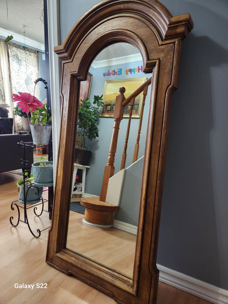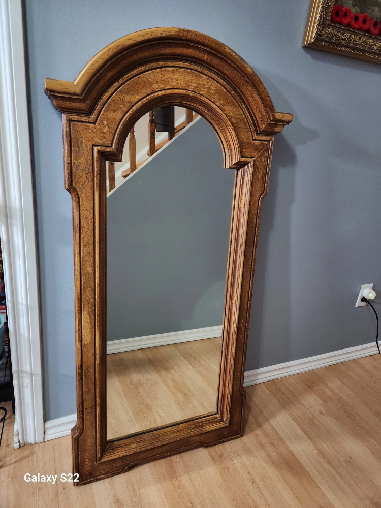 very good condition,no chips on the mirror.Heavy compared to modern mirror.frame is not wood.