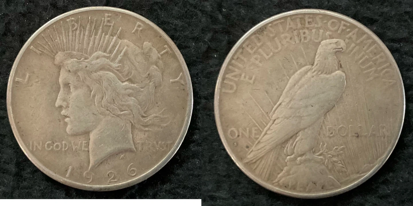 65Selling a US 1926 Peace Silver Dollar. It's a beautiful coin with a lot of history! 90% silver.
