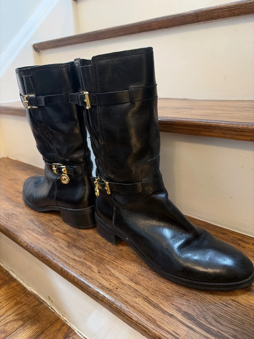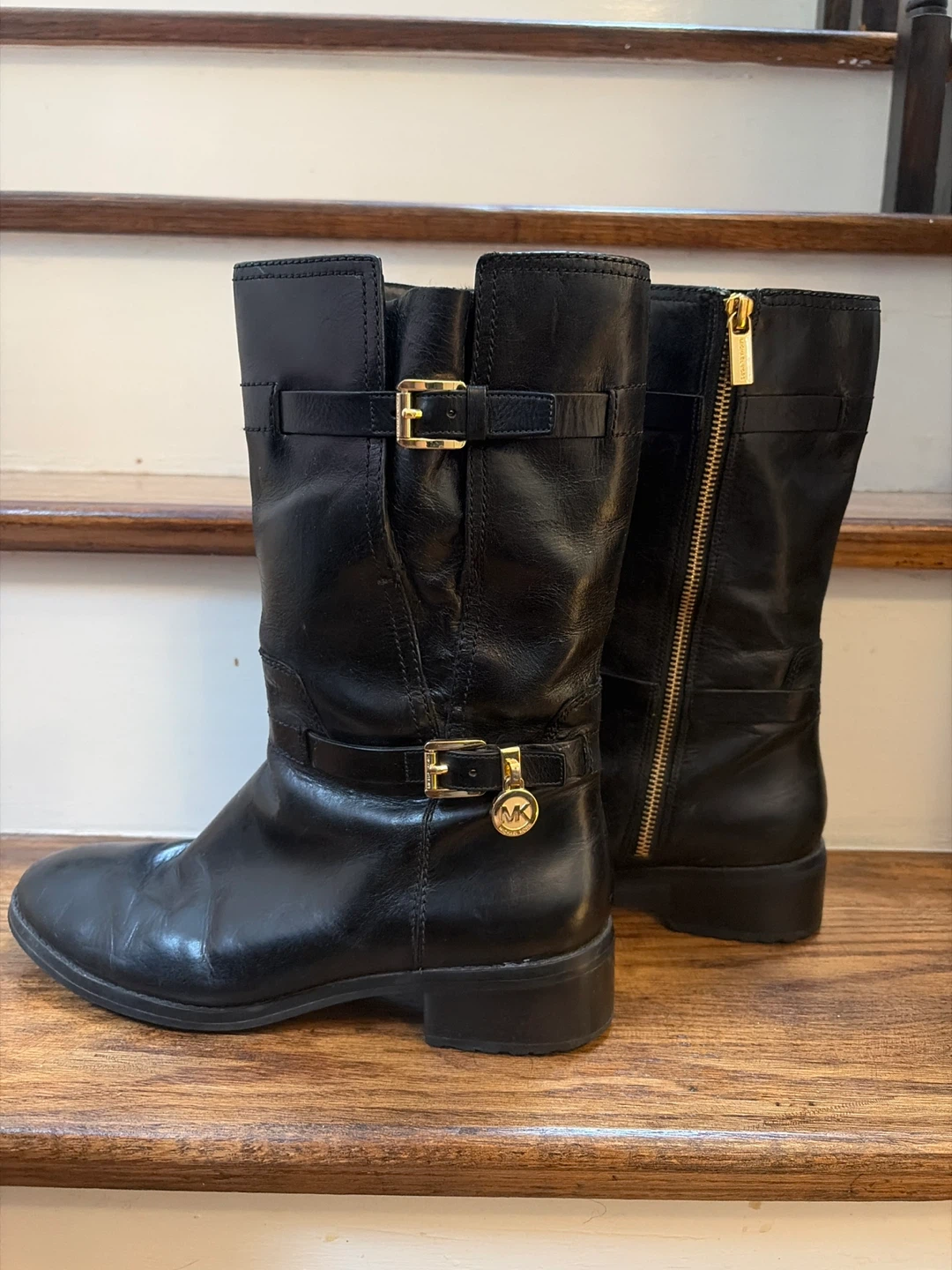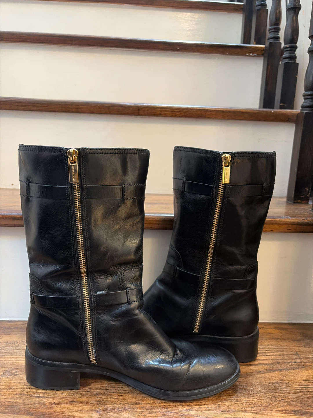 Michael Kors Black Leather Buckle Riding Boots Size 9