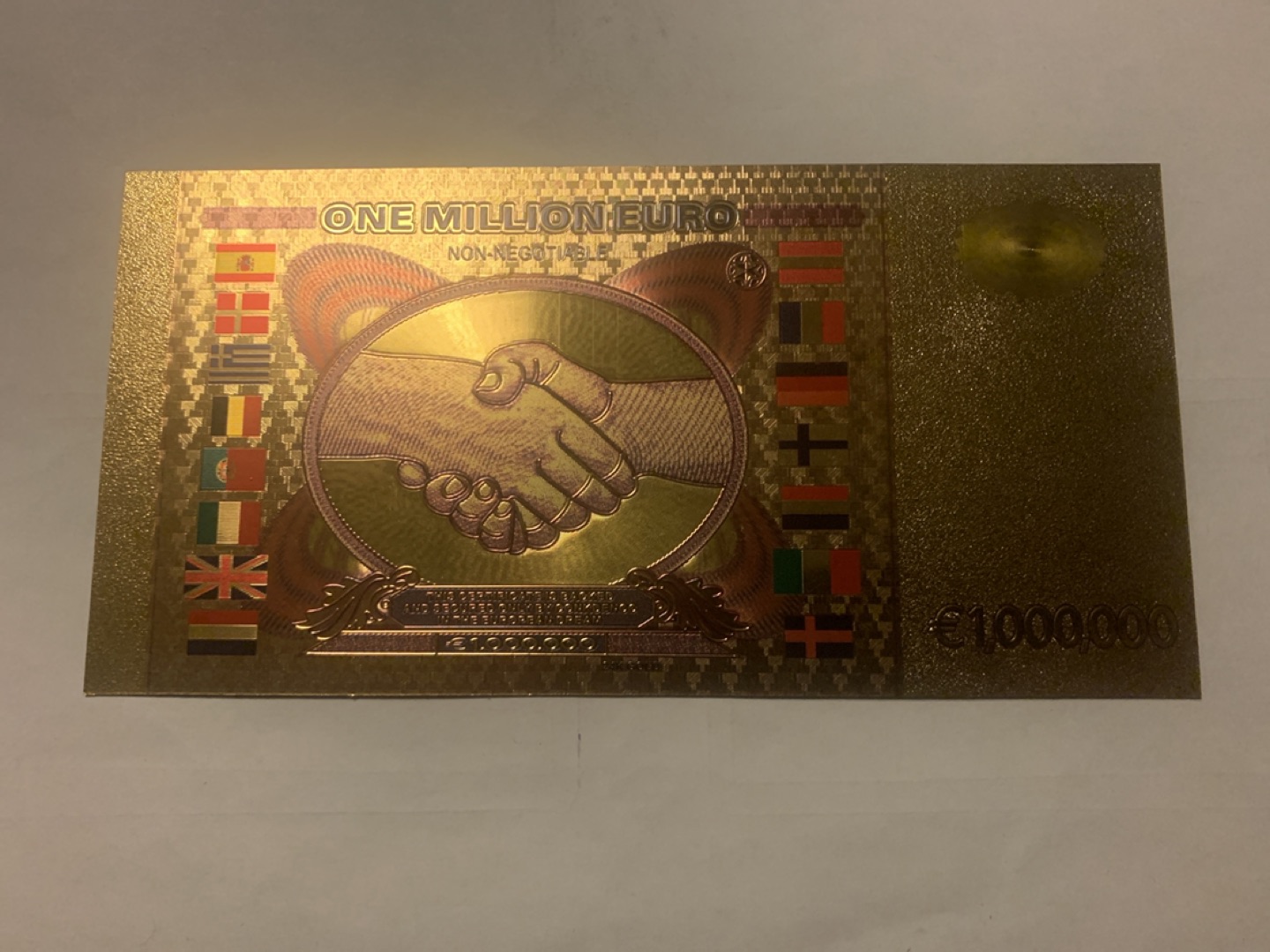 A 24k gold clad 1 million Euro bill in perfect shape.