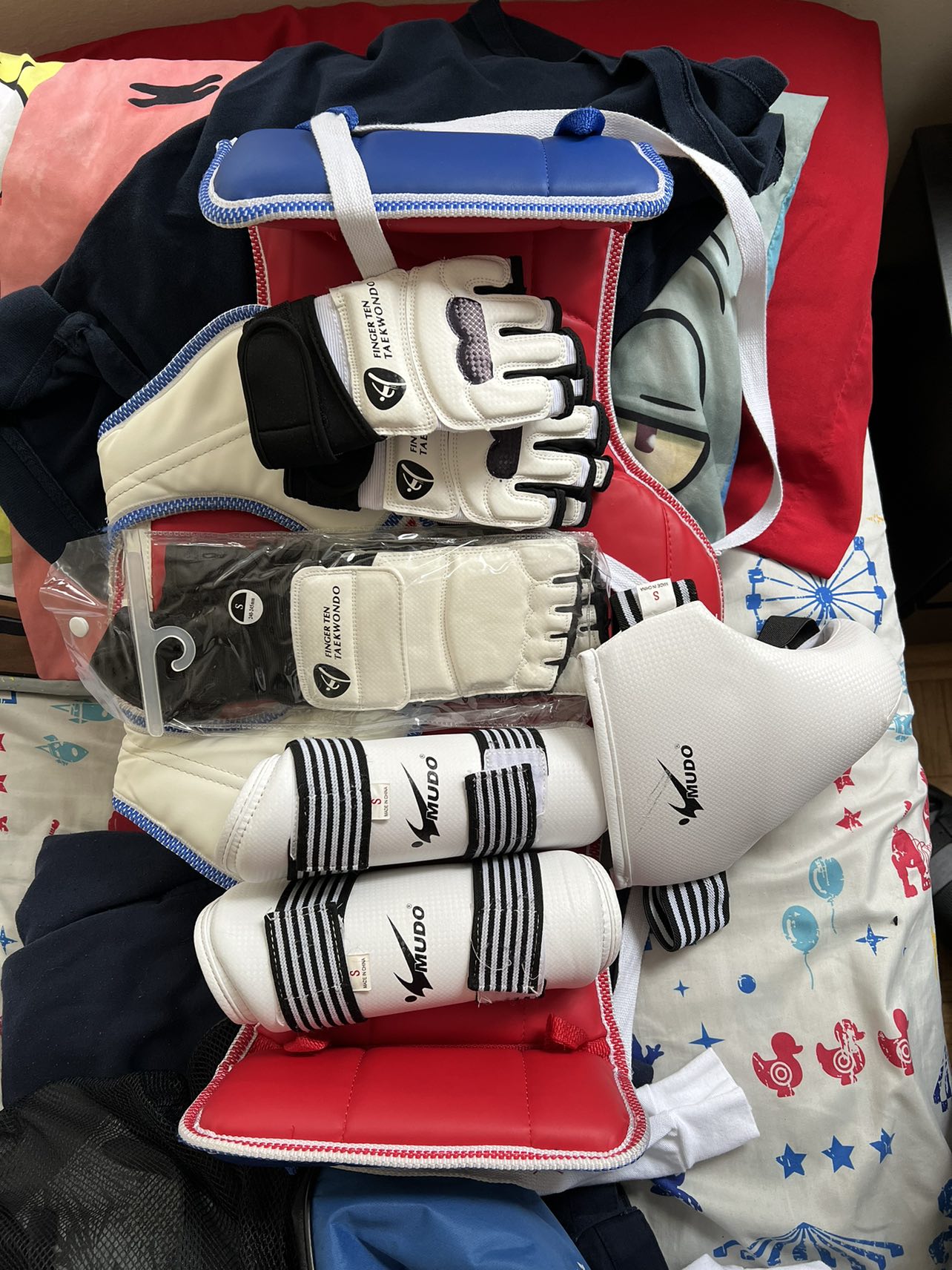 Taekwondo gear. Only has one shinguard, but otherwise complete. Comes with head piece, crotch protection, body guard , forearms, gloves, and duffle bag. Size is small. Depending on your child it can fit children from 7- 10yrs old.Selling everything together. Bought all together for $350. Used for about a year. Good shape, no rips. Pick up near mount pleasant and eglinton. $150 OBO