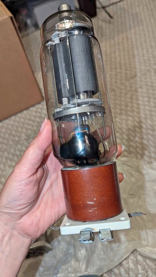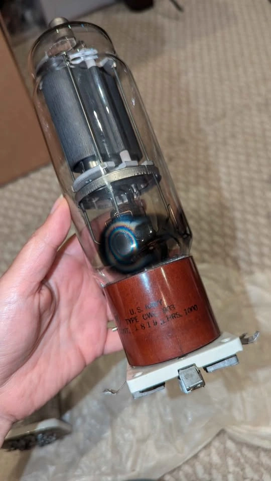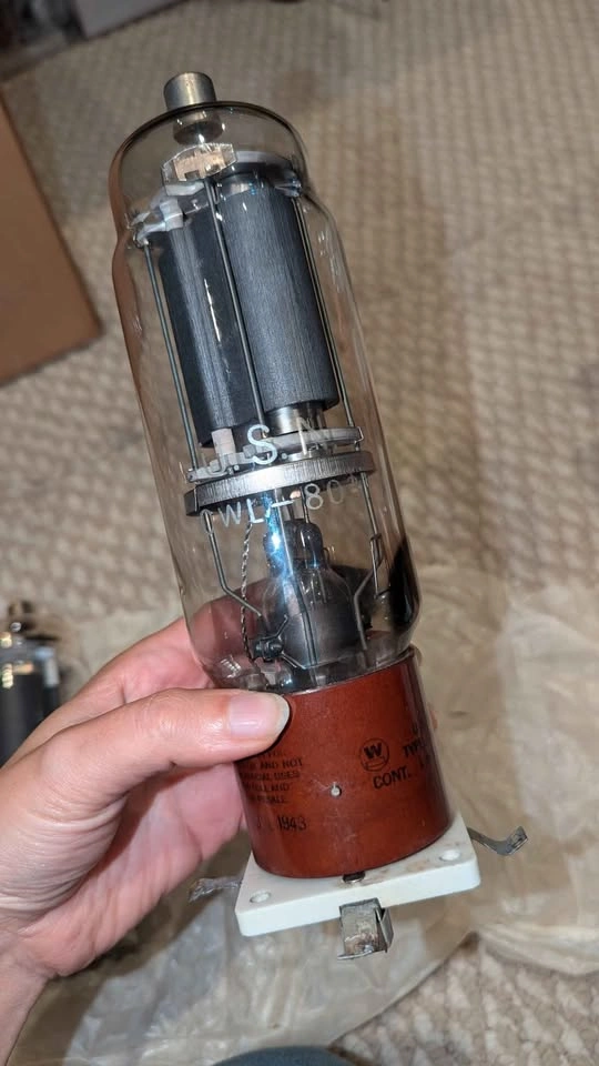 170Authentic WWII-era U.S. Navy transmitting vacuum tube, Type CWL-803 (also VT-143). Manufactured by Westinghouse in 1943 under government contract. Brown phenolic base, ceramic mounting, top anode cap. Clean glass, bright getter, no white spots or cracks. Filament continuity untested. Ideal for collectors, restorers, or display. Approx. 7 inches tall. Sold as-is, untested. Feel free to message if you have any questions!