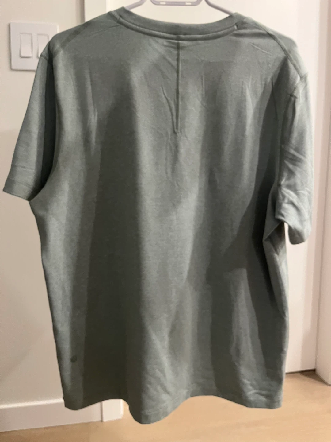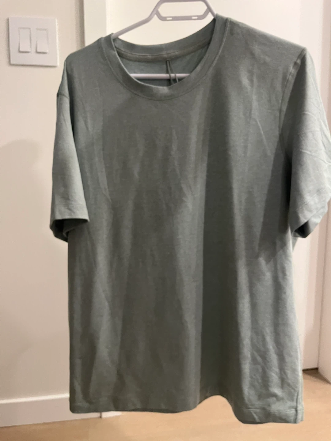 This is a Lululemon t-shirt in a size large. It's made from a comfortable, breathable fabric. Perfect for casual wear or athletic activities.