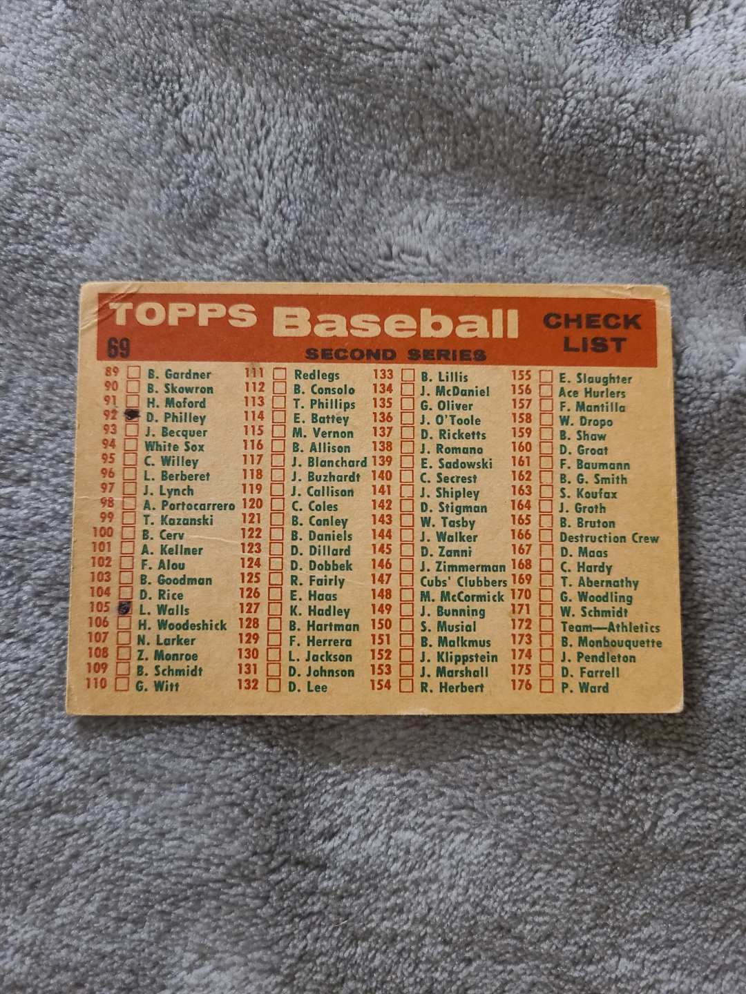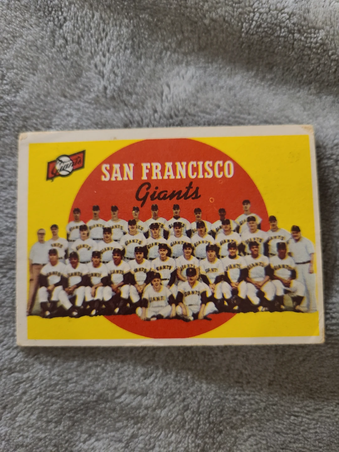 This is a1959 Topps Baseball card featuring the San Francisco Giants team photo. The back is a check list for the second series. Card number 69 is visible. (2 boxes have been marked on reverse)
