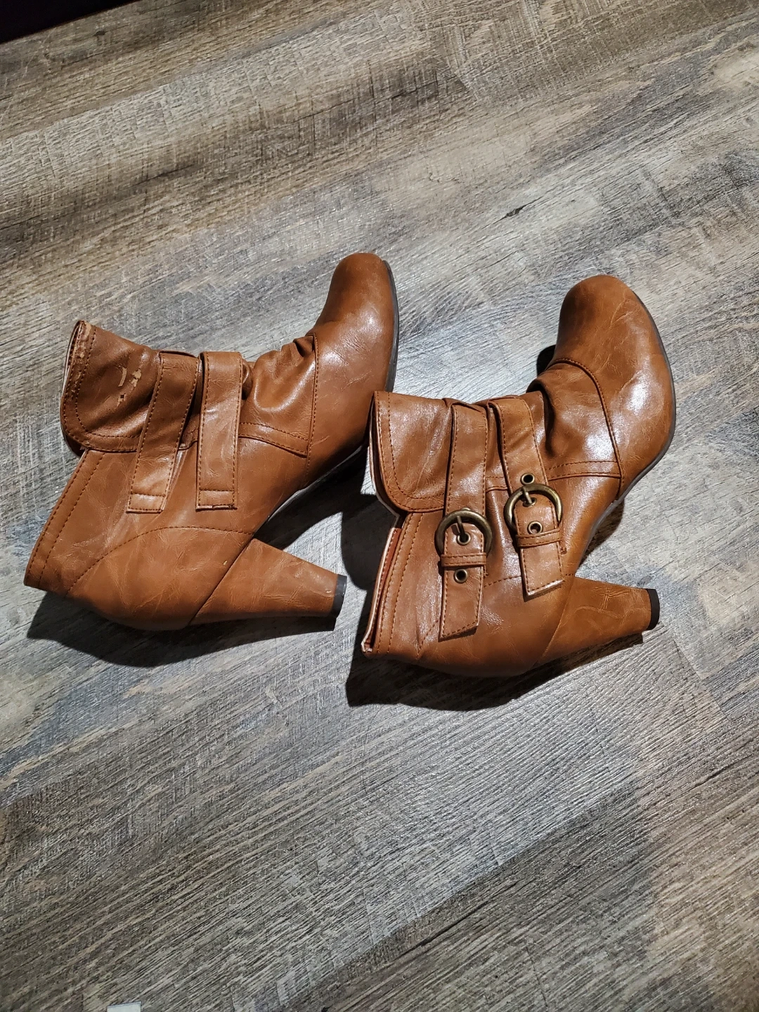 These cute brown ankle boots are in great condition and ready for a new home! They feature stylish buckle detailing and would be a great addition to any wardrobe