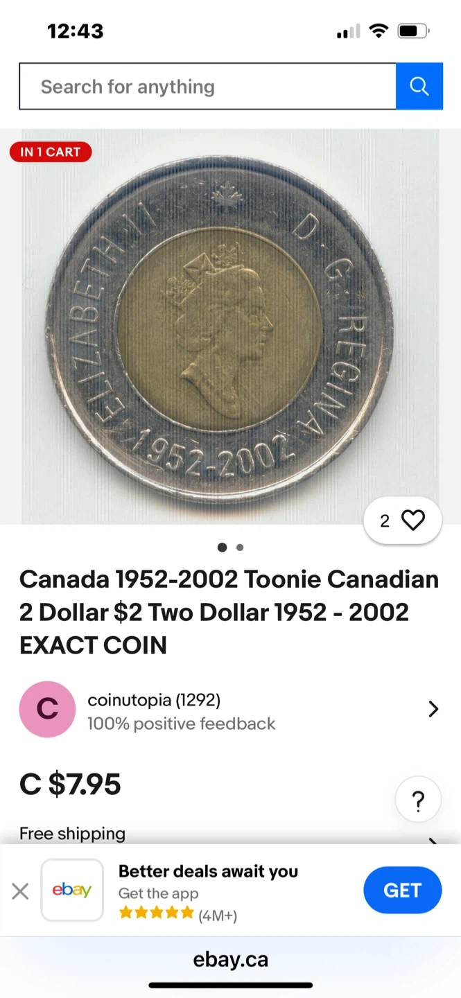 Selling a Canadian two-dollar coin, also known as a Toonie! It features a polar bear on one side and Queen Elizabeth II on the other. A great addition to any collection