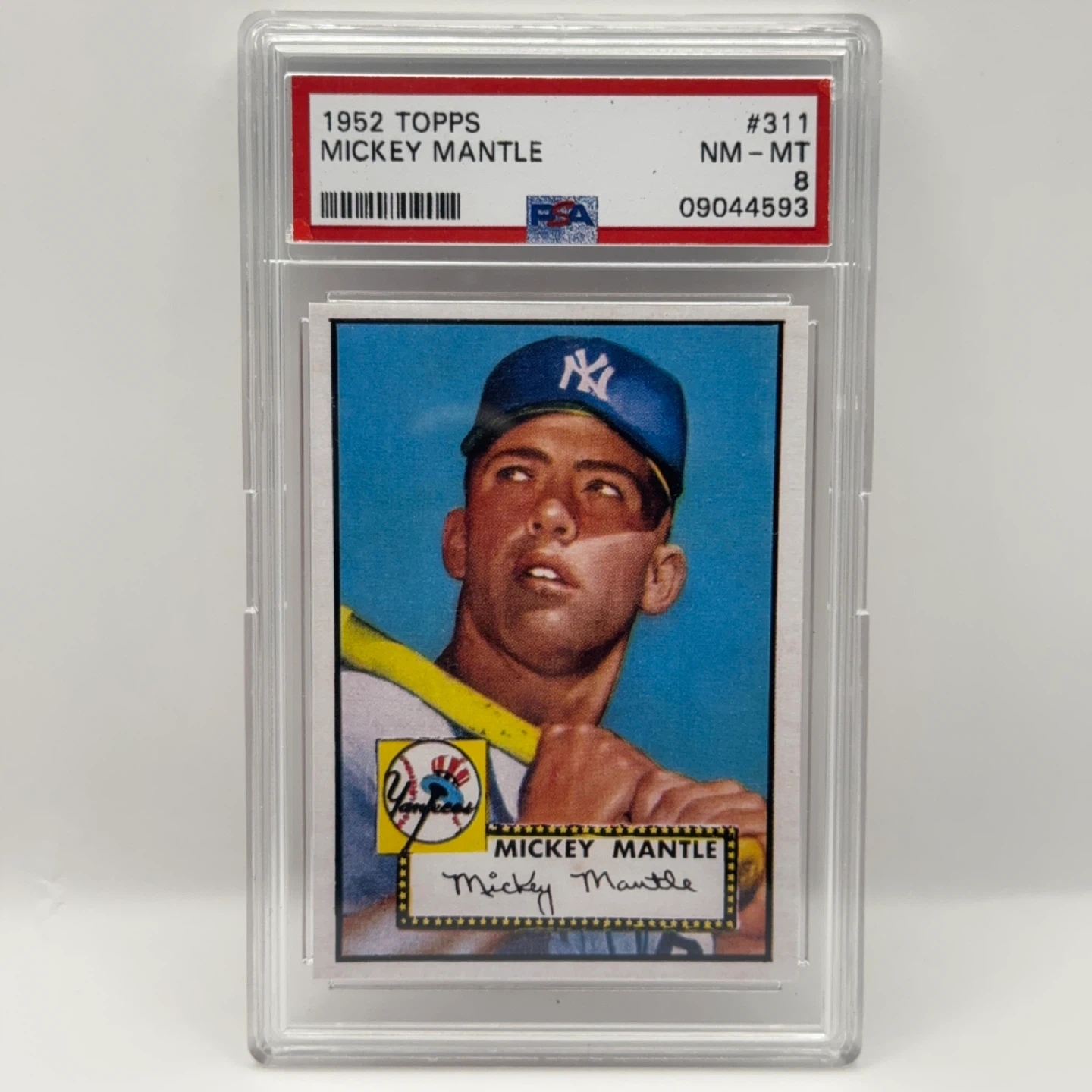 79💫Expensive Card, Cheap Price Tag!💫 Fully custom-made 1952 Topps Mickey Mantle #311 – PSA 8 style card for display purposes only. NOT authentic, officially licensed, or officially graded. Designed as an essentially 1:1 replica-style piece of the iconic Mantle rookie grail. ✔ $100 BEST PRICE ✔ Classic 1952 Topps design with crisp detail ✔ PSA-style slab with functional QR code & cert number ✔ High-quality materials & premium craftsmanship Pickup in Mississauga – Shipping & delivery available. Serious buyers only. Message for details. Interested in other items? Check out @proxyTCG on Instagram!